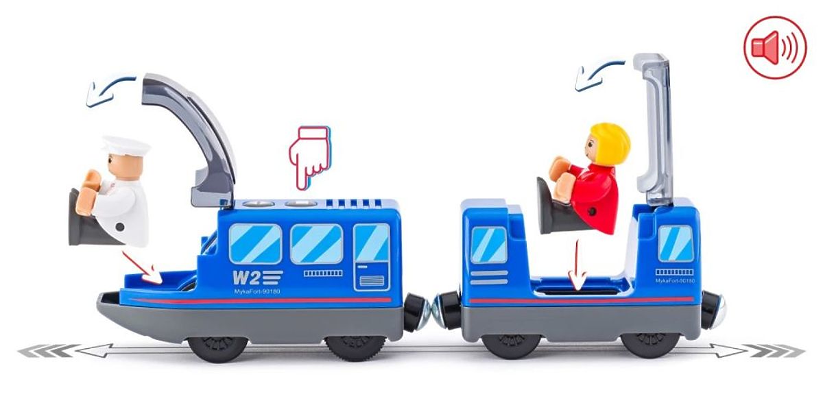 Lokomotíva robí na dieťa úžasný dojem, keď sa pohybuje po koľajniciach bez akejkoľvek pomoci. Ďalšou atrakciou sú otváracie klapky pre rušňovodiča aj cestujúceho. Po otvorení ich možno vybrať. Figúrky majú pohyblivé končatiny. Dobrú priľnavosť vagónov k lokomotíve zabezpečuje magnet umiestnený na jej konci.
