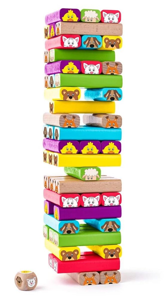 I- ľahšia verzia: staviame vežu, každý hráč hádže kockou a vyťahuje z veže kocku zodpovedajúcu vylosovanému zvieraťu, kladie ju na vrchol veže tak, aby sa nezrútila, kto spôsobí pád veže, prehráva;