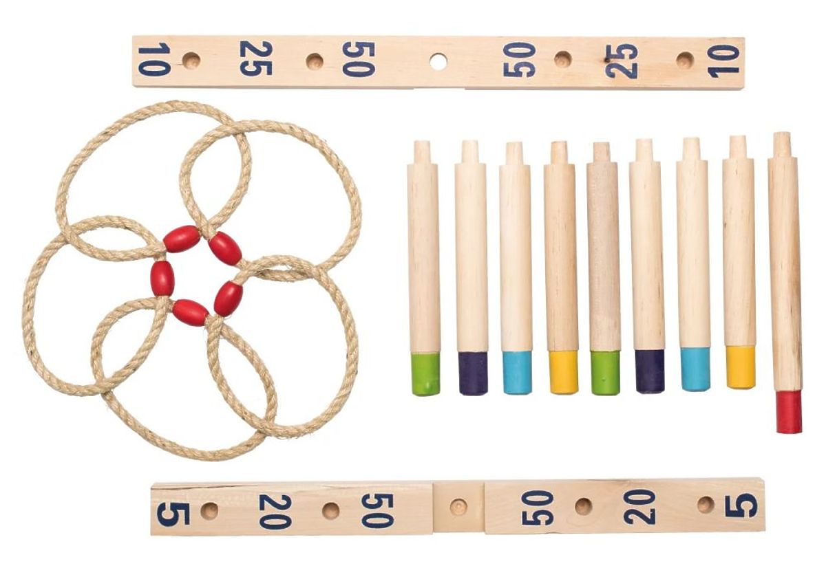 Hra je vyrobená z dreva, na dvoch do kríža spojených doskách sa nachádzajú drevené, farebné kolíky s označenými počtami bodov. Mierime na ne obručami vyrobenými z lana, ak obruč hodíme na daný kolík, získame zodpovedajúci počet bodov. Hru môže hrať súčasne od dvoch do ôsmich osôb.