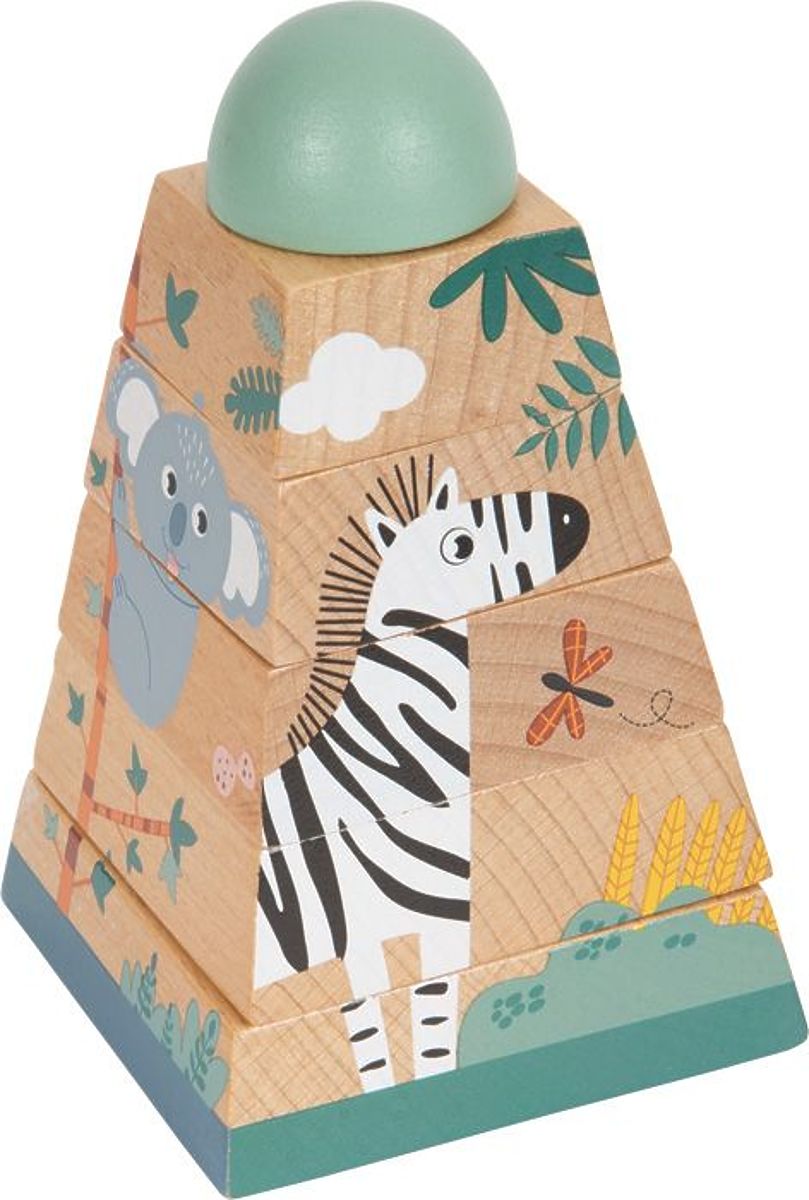 Skladacia pyramída je klasická hračka z čias nášho detstva. Tentoraz s motívom zvieratiek Safari, od uznávaného nemeckého výrobcu hračiek Small Foot Design.