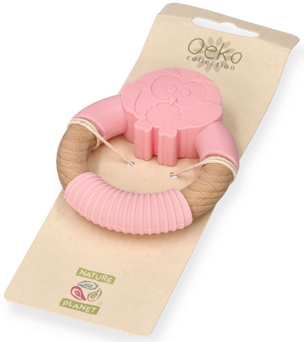 Svrbiace ďasná už nemusia byť problémom. Tu je nielen praktický produkt, ale aj krásna ozdoba a hračka do ruky s motívom ružovej sovičky. Vďaka použitiu bezpečného silikónu môže dieťa hrýzť tento produkt bez obáv o škodlivé látky, ktoré by sa mohli dostať do jeho organizmu. Drevený krúžok, na ktorý je nasadená mäkká silikónová plocha, je ideálny na žuvanie. Výstupky na hryzátku a pruhovaná nástavba určite upokoja boľavé ďasná, z ktorých rastú malé zúbky.