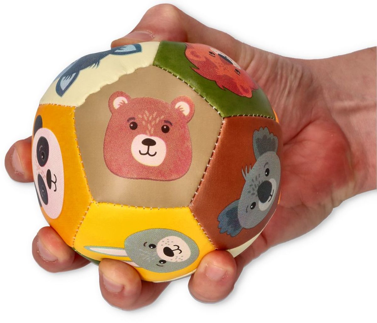 Loptička s divokými zvieratkami v jemných odtieňoch béžovej a hnedej je návrhom jednoduchej, klasickej hračky, ktorú každý pozná a má rád. Napriek svojej jednoduchosti rozvíja motoriku a povzbudzuje k aktivite. Jej veľkosť je ideálna pre malé rúčky - dieťa ju môže stláčať, hádzať a chytať. Hraním s loptičkou sa dieťa učí rozlišovať farby a rozvíja motoriku ruky. Vďaka obrázkom zobrazujúcim zvieratá sa dieťa zaujímavým spôsobom učí ich názvy. Pri hre s loptou sa dieťa učí spolupráci a zdravej súťaživosti. Odolná polyesterová tkanina je mimoriadne mäkká na dotyk, ideálna pre prvé hry s loptami.