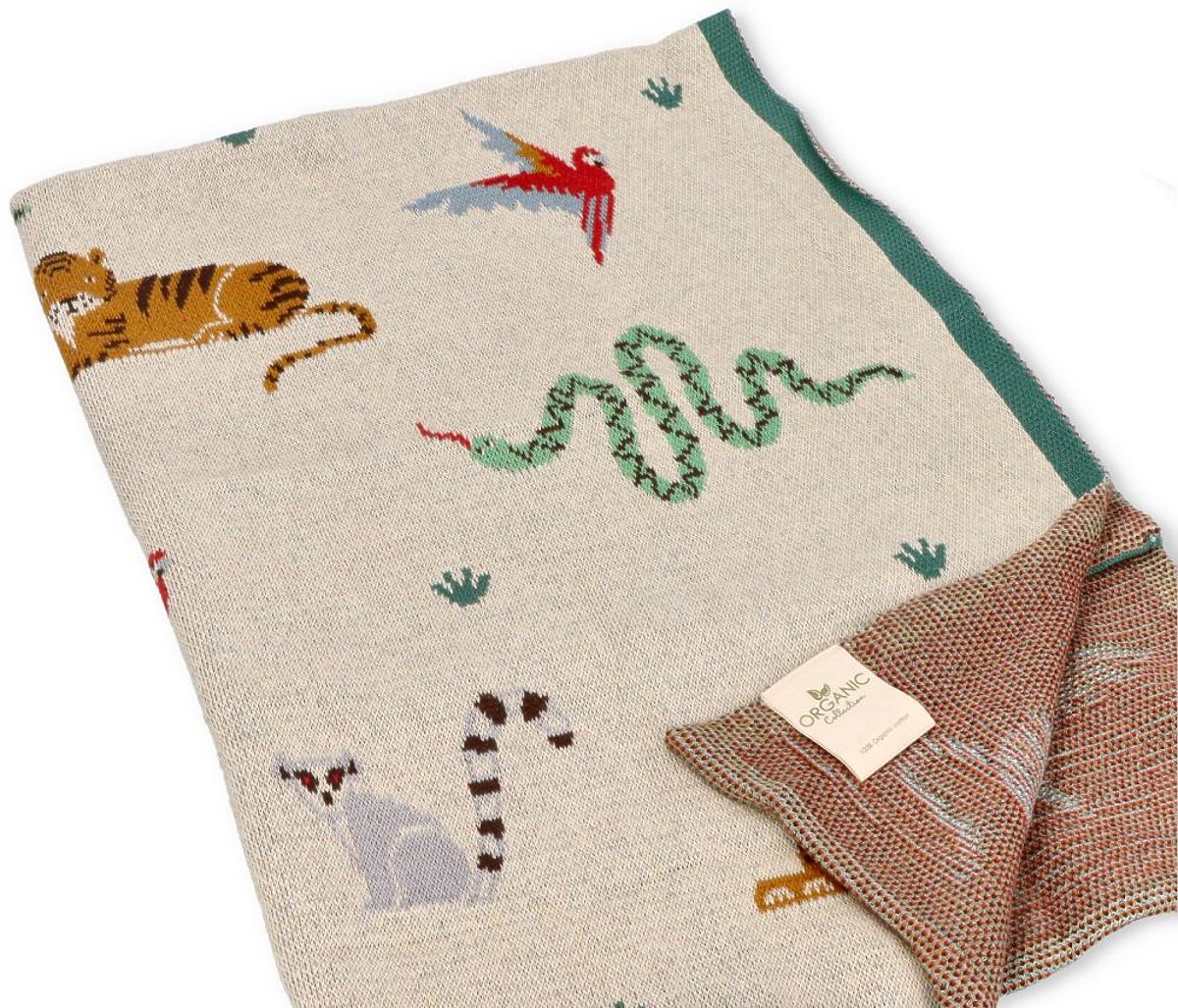 Deka Divoké zvieratá z organickej bavlny je ideálnou voľbou do detskej izby, ktorá spája prírodu a moderný dizajn. Deka je vyrobená v prírodnej, béžovej farbe s motívom divokých zvierat. Nájdeme tu zvieratká ako leva, hada alebo papagája. Skvele premení detský kútik a dodá mu jedinečný charakter. Deka sa výborne hodí do kočíka, kolísky alebo postieľky. Ideálna na piknik alebo výlet. Deka je trvanlivá a príjemná na dotyk, môže dieťaťu slúžiť mnoho rokov.