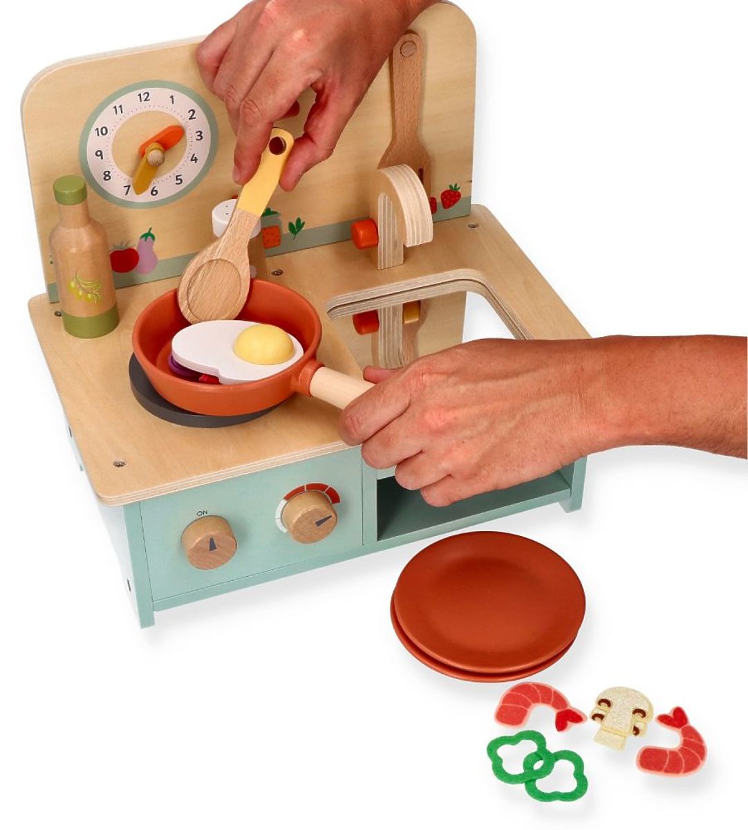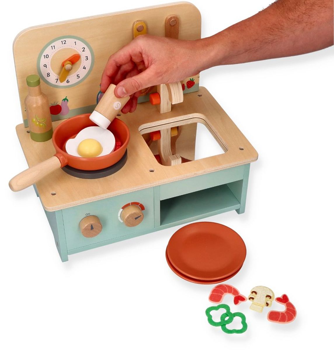 Varič s príslušenstvom je ideálnou hračkou pre deti, ktoré rady napodobňujú dospelých a hrajú sa na varenie. Súčasťou sady je realistický varič s gombíkmi, horákom, drez s kohútikom a tiež základné kuchynské náradie: panvica, lyžica, špachtľa a soľ a olej. Kuchynka je navyše vybavená hodinami, ktoré umožnia kontrolovať čas "pripravovaných jedál".