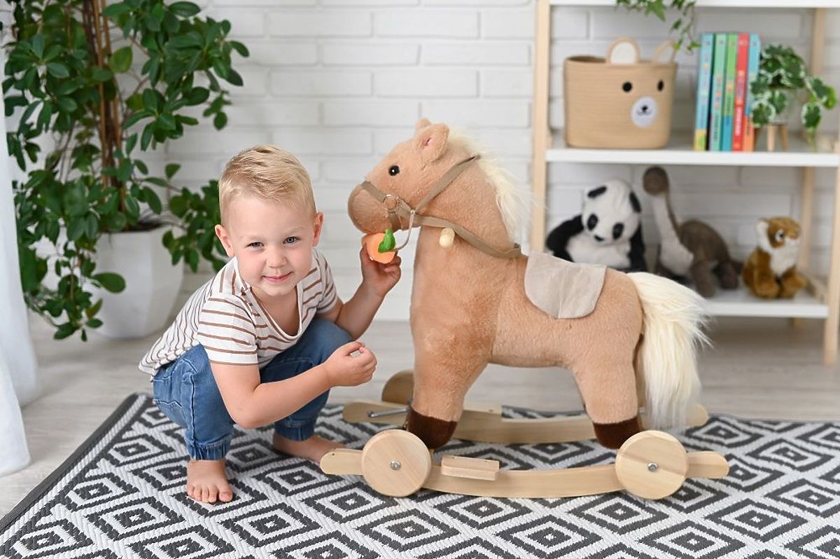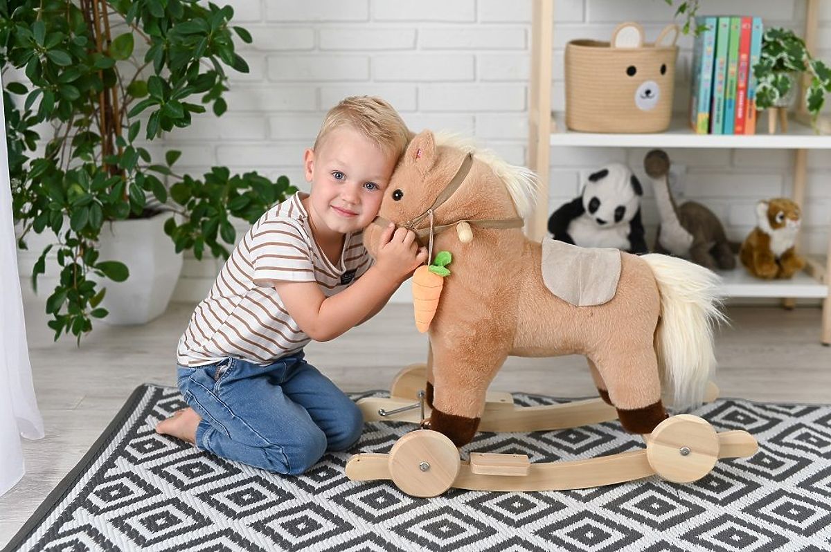 Hojdací koník s mäkkým materiálom a zvukmi pre deti od 3 rokov. .. viac