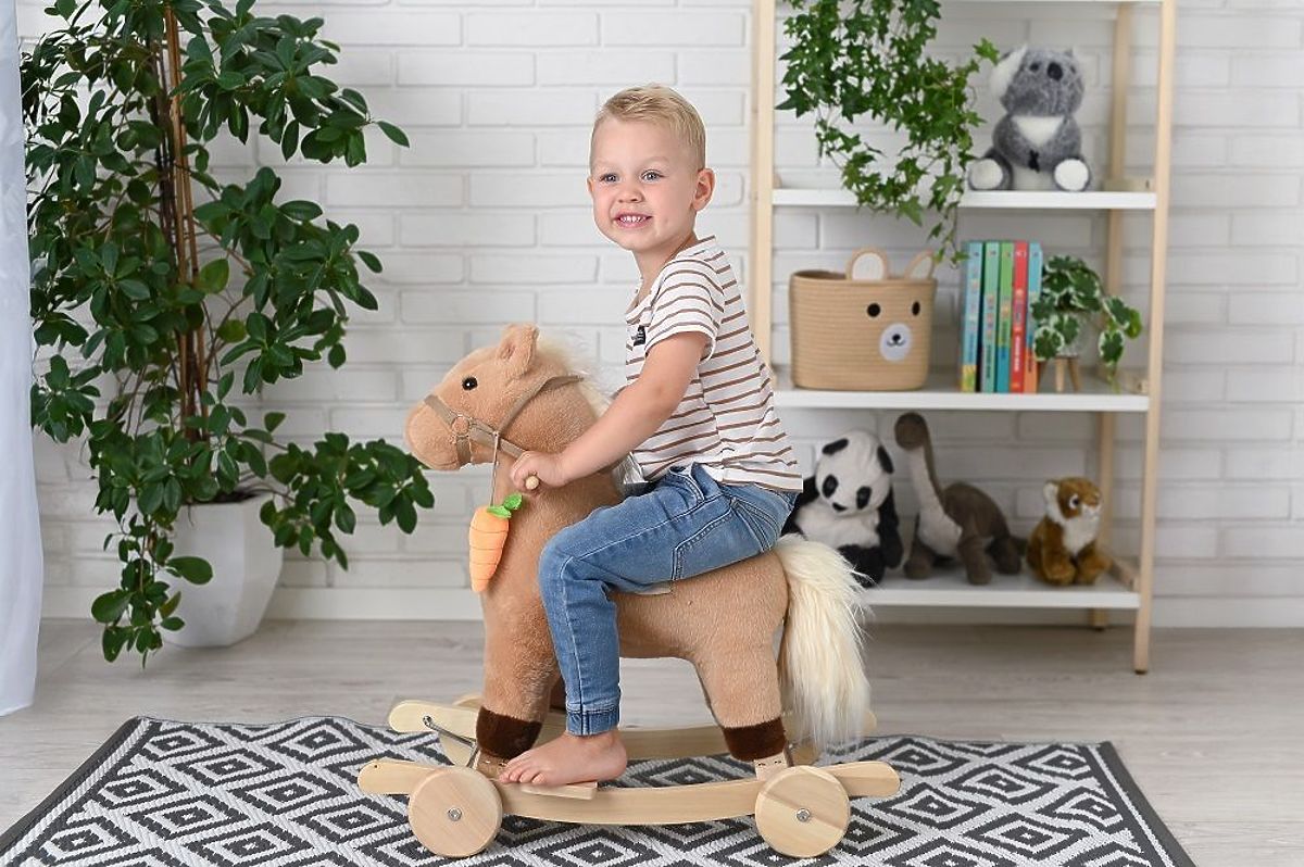 Pozrite sa na toho krásneho koníka. Za čím tak beží? Radostne cvála a vyzýva k spoločnej hre. Taký je náš najnovší hojdací koník – radostný, netrpezlivý a plný chuti k spoločnej zábave. A čo z toho má? Samozrejme veľa zábavy a mrkvu.