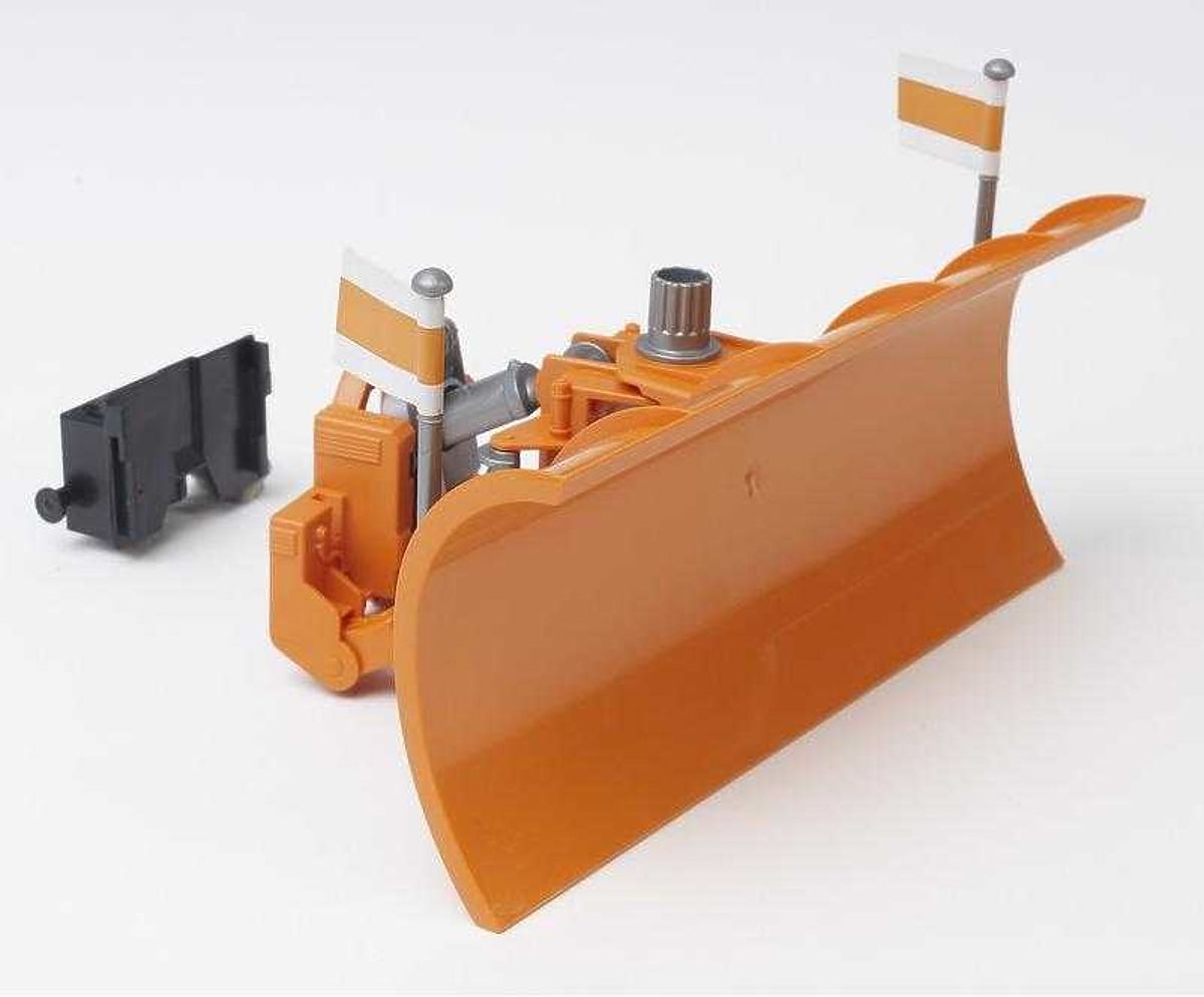 Bruder čelná radlica je výškovo nastaviteľná a tiež samobrzdná. Pomocou páčky je možné radlicu ľahko zdvíhať nahor a spúšťať nadol. Na radlici sú vpravo a vľavo umiestnené odnímateľné vlajočky. Hodí sa ku všetkým nákladným vozidlám MAN, MACK, MERCEDES BENZ a ku všetkým traktorom série 20xx a 30xx. Tento model radlice je nepostrádateľným pomocníkom na ceste v zimných dňoch. Čelná radlica je vyrobená v nemeckej firme BRUDER s maximálnou precíznosťou a dôrazom na kvalitné spracovanie detailov. Na výrobu bol použitý vysoko odolný ABC plast, ktorý sa vyznačuje pružnosťou a lesklým povrchom. Čelná shrnovacia radlica pre nákladné autá je vyrobená v mierke 1:16 ako verná plastová kópia. Hlavné vlastnosti: výškovo nastaviteľná, kompatibilná s Bruder 3651 MB Arocs valník s ramenom, vyrobené v Nemecku