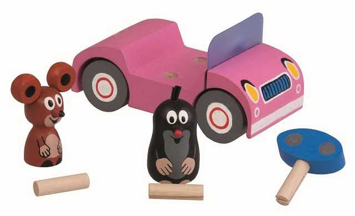 Krtko s kamarátkou Myškou v ružovom autíčku na výlete. Figúrky aj kľúčik je možné ľubovoľne vyberať a zamieňať. Hlavné vlastnosti: výrobok spĺňa požiadavky EÚ na bezpečnosť hračiek, vhodný pre deti od 3 rokov© Zdeněk Miler