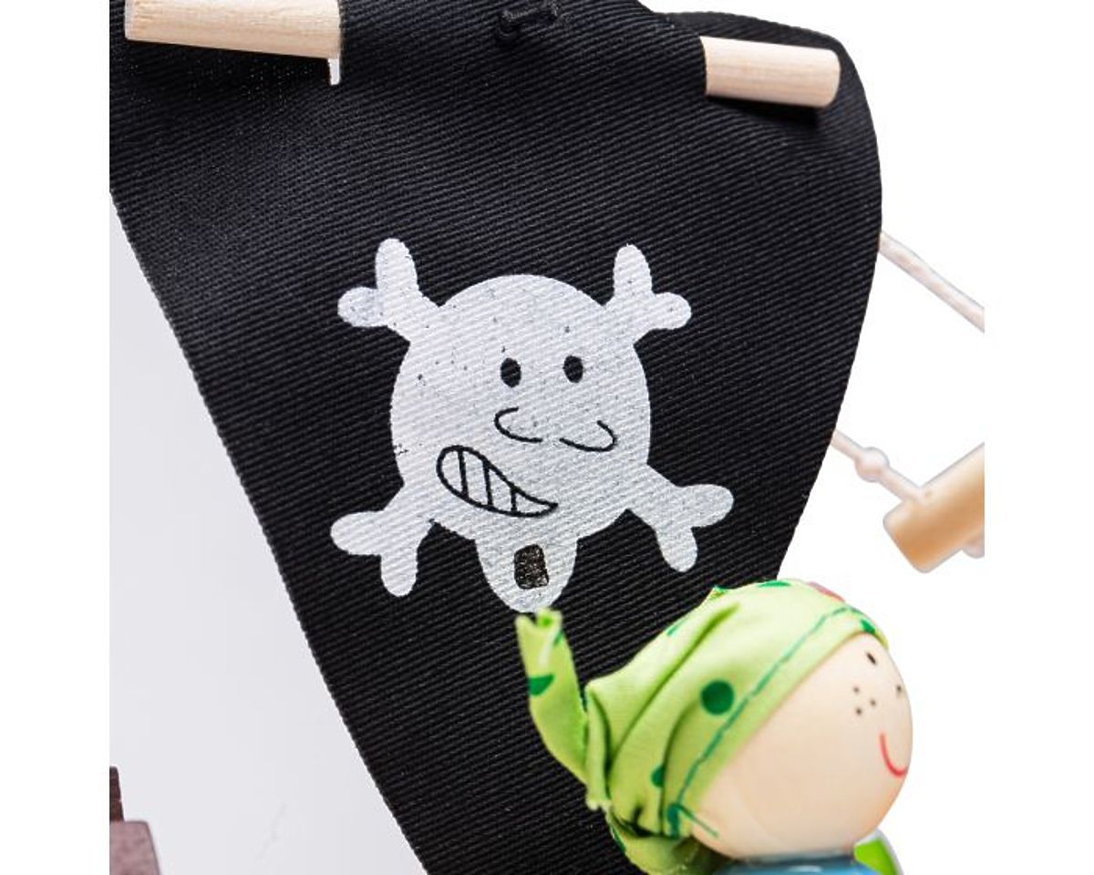 Ahoj kapitán! Veselí námorníci budú zbožňovať túto drevenú mini pirátsku loď, dodávanú s kapitánom, dvoma pirátmi, loďou, kotvou, truhlou s pokladom a dokonca aj žralokom! Všetky hracie prvky sa dajú jednoducho schovať do lode a vziať so sebou kamkoľvek na cesty. Súčasťou balenia je všetko podľa obrázka. Hlavné vlastnosti: vyrobené z vysoko kvalitných materiálov, ktoré pochádzajú zo zodpovedných zdrojov, vyhovuje súčasným európskym bezpečnostným normám