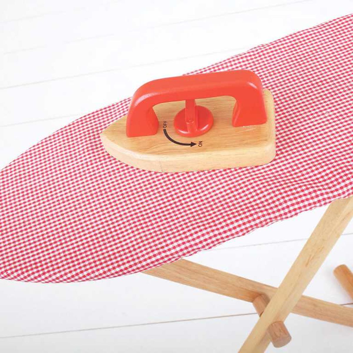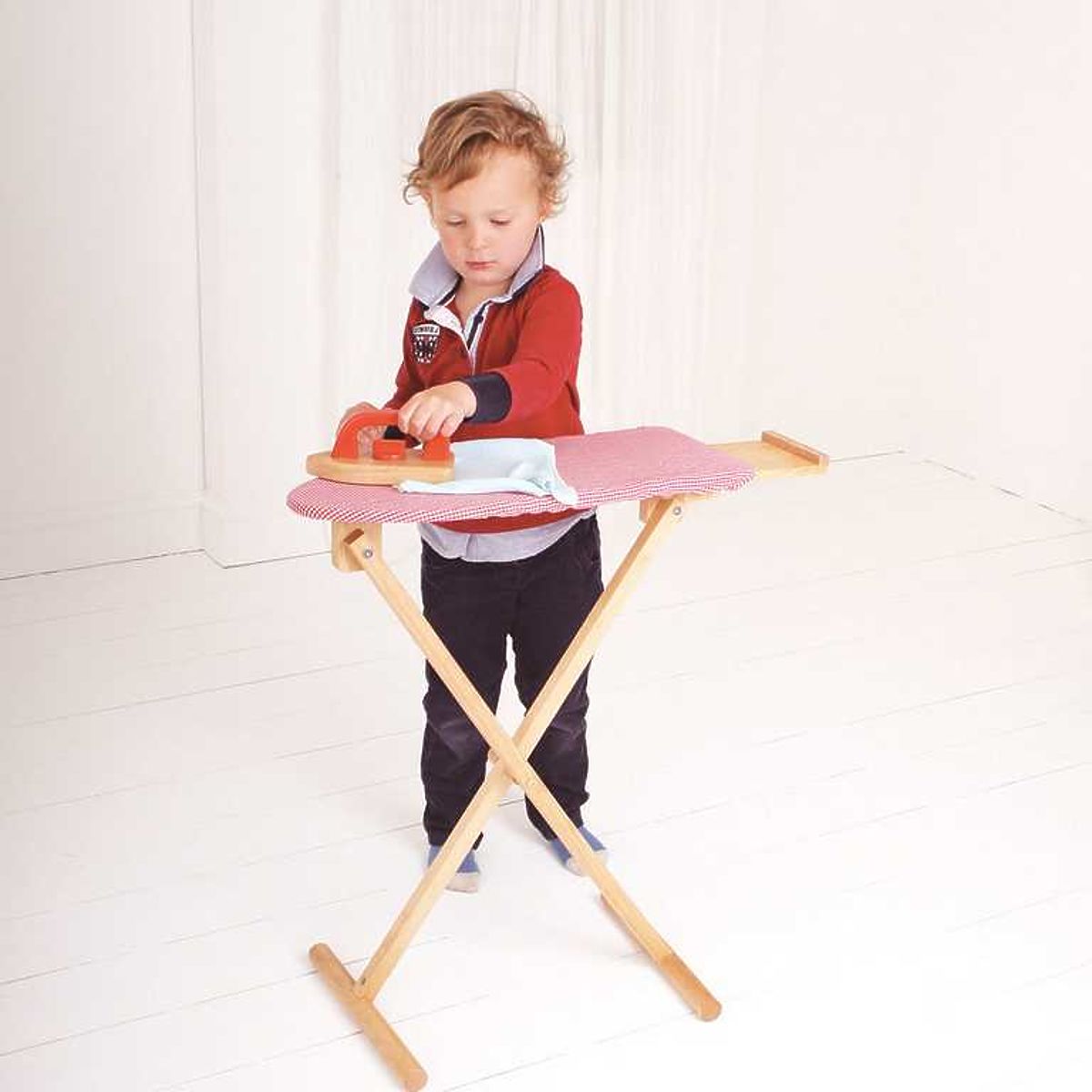 Vaši najmenší budú určite nadšení z tejto jasnej a robustnej drevenej žehliacej dosky a drevenej žehličky. Ideálna na žehlenie oblečenia pre bábiky alebo na pomoc pri žehlení mamičke či ockovi. Skvelý doplnok k nášmu drevenému sortimentu pre domácnosť. Vyrobené z vysoko kvalitných, zodpovedne získaných materiálov. Spĺňa aktuálne európske bezpečnostné normy. Hlavné vlastnosti: obsahuje drevenú žehliacu dosku potiahnutú látkou a drevenú žehličku, podporuje kreativitu, zručnosť a realistickú hru