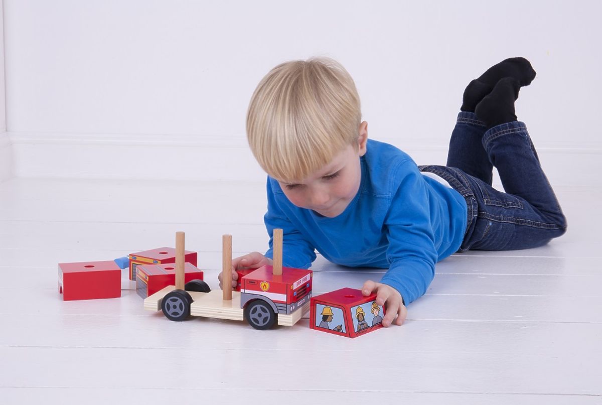 Drevené vozidlo s nasadzovacími dielikmi pre rozvoj motoriky. .. viac