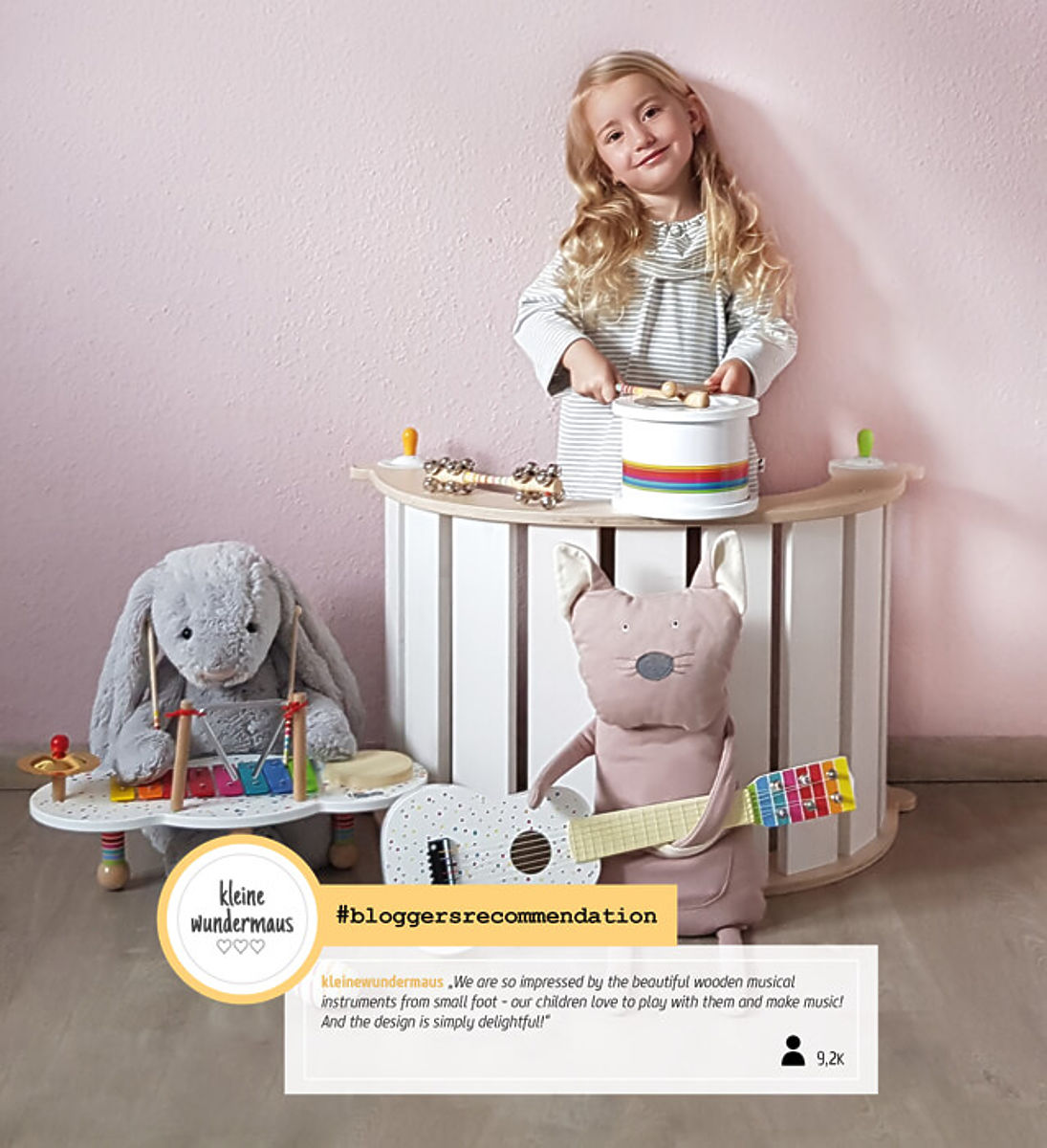 Táto bodkovaná hudobná sada je ideálna pre vaše vystúpenie. Šesť rôznych nástrojov s individuálnymi zvukmi. S hrkálkami, rolničkami, xylofónom, tamburínou či trianglom si každý člen kapely nájde ten svoj správny nástroj. Nejedná sa o hudobný nástroj, ale iba o hračku. Hlavné vlastnosti: výnimočný dizajn vyrobený v Nemecku zábava pri hraní obsahuje šesť rôznych nástrojov