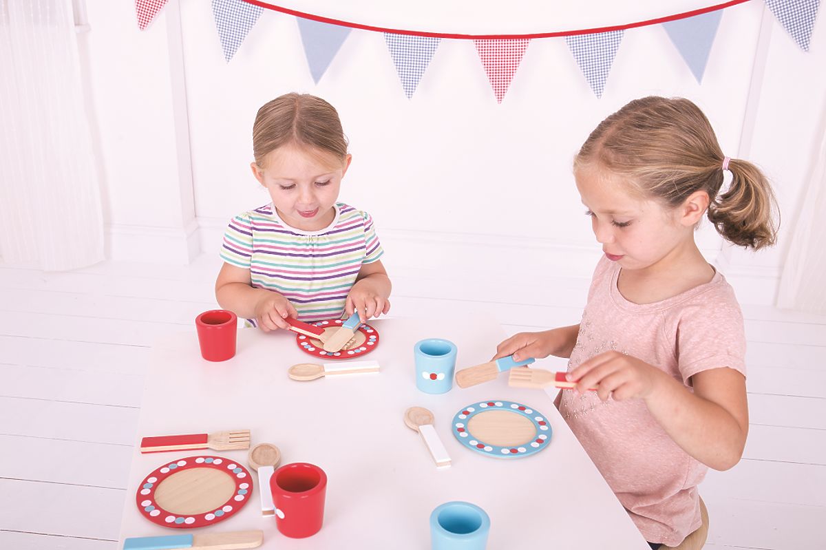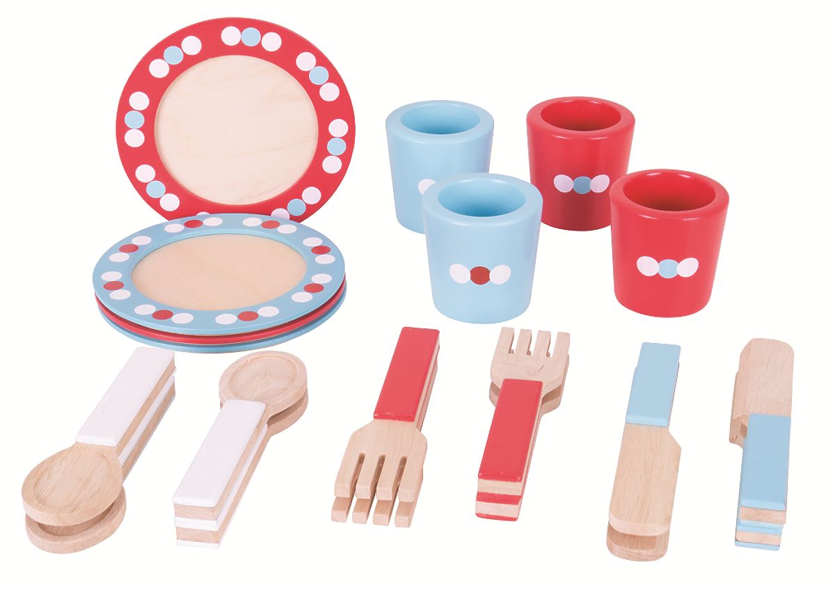 Babynabytek.sk » Kuchynky / Vybavenie do kuchynky / Bigjigs Toys Drevený jedálenský servis s bodkami