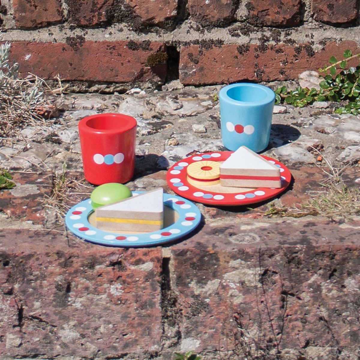 Niekto na popoludňajší čaj? Podeľte sa o slanú desiatu, sladkú pochúťku a šálku svojho obľúbeného nápoja s priateľom alebo členom rodiny. Sada obsahuje 2 drevené taniere, hrnčeky, sendviče a 2 sladké dobroty. Skvelý spôsob, ako inšpirovať kreatívne a nápadité hranie a tiež skvelý doplnok do každej drevenej kuchynky. Rozvíja obratnosť a zlepšuje sociálne zručnosti už od raného veku. Hlavné vlastnosti: rozvíja obratnosť a zlepšuje sociálne zručnosti už od raného veku, podporuje kreatívne a nápadité hranie, vyrobené z vysoko kvalitných, zodpovedne získaných materiálov, spĺňa aktuálne európske bezpečnostné normy.