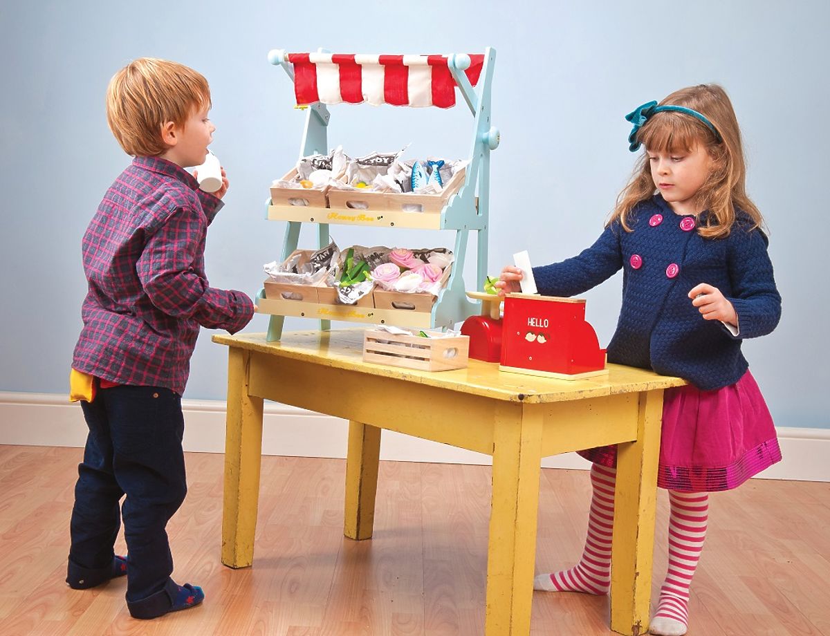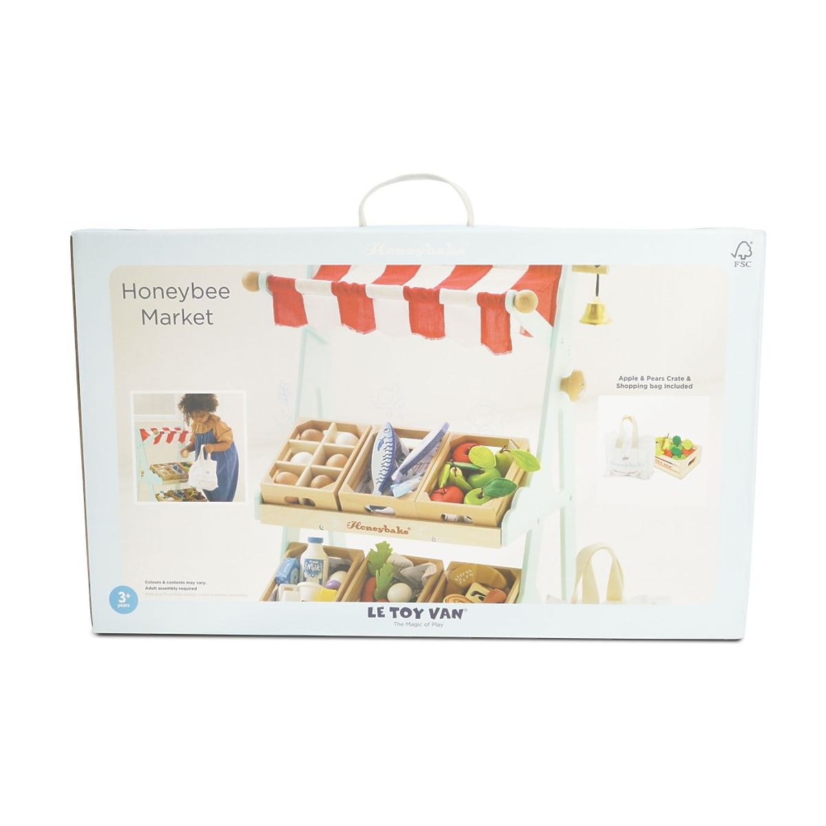 Predajný stánok je favoritom medzi produktmi Le Toy Van, nie je teda prekvapením, že vyhral niekoľko ocenení. Navrhnutý šikovnými dizajnérmi pre každodennú zábavnú hru na role. Nechýba ani nákupná taška a debnička s jablkami a hruškami. Do políc možno uložiť aj ďalšie debničky s jedlom od Le Toy Van. Hore pekný baldachýn, z boku zvonček, ktorým zákazníci môžu upútať pozornosť predajcov. Hračka deťom pomôže s rozvojom sociálnych zručností a reči, tiež sa naučia trpezlivosti. Hračky s účelom Všetky hračky firmy Le Toy Van sú vyrobené s cieľom – aby dlho vydržali. Dizajnované s láskou skúsenými remeselníkmi za použitia etických praktík a udržateľných materiálov, ktoré sú šetrnejšie k našej planéte. Hlavné vlastnosti: vyrobené eticky z udržateľného FSC dreva testované podľa najprísnejších štandardov maľované netoxickými farbami na báze vody inšpiruje k predstavivej hre rozvíja kognitívne zručnosti Ocenenia hračky: Grand Prix De La Presse Award 2012 Honeybake kolekcia: Hračky v tejto kolekcii sú vhodné na objavovanie, pomôžu deťom s rozvojom predstavivosti. Tradičný dizajn s modernými detailmi deti určite bude baviť. Honeybake je kolekcia Le Toy Van, ktorá vyhrala najviac ocenení a to za dizajn, kvalitu, bezpečnosť a tiež za vzdelávaciu a hernú hodnotu.