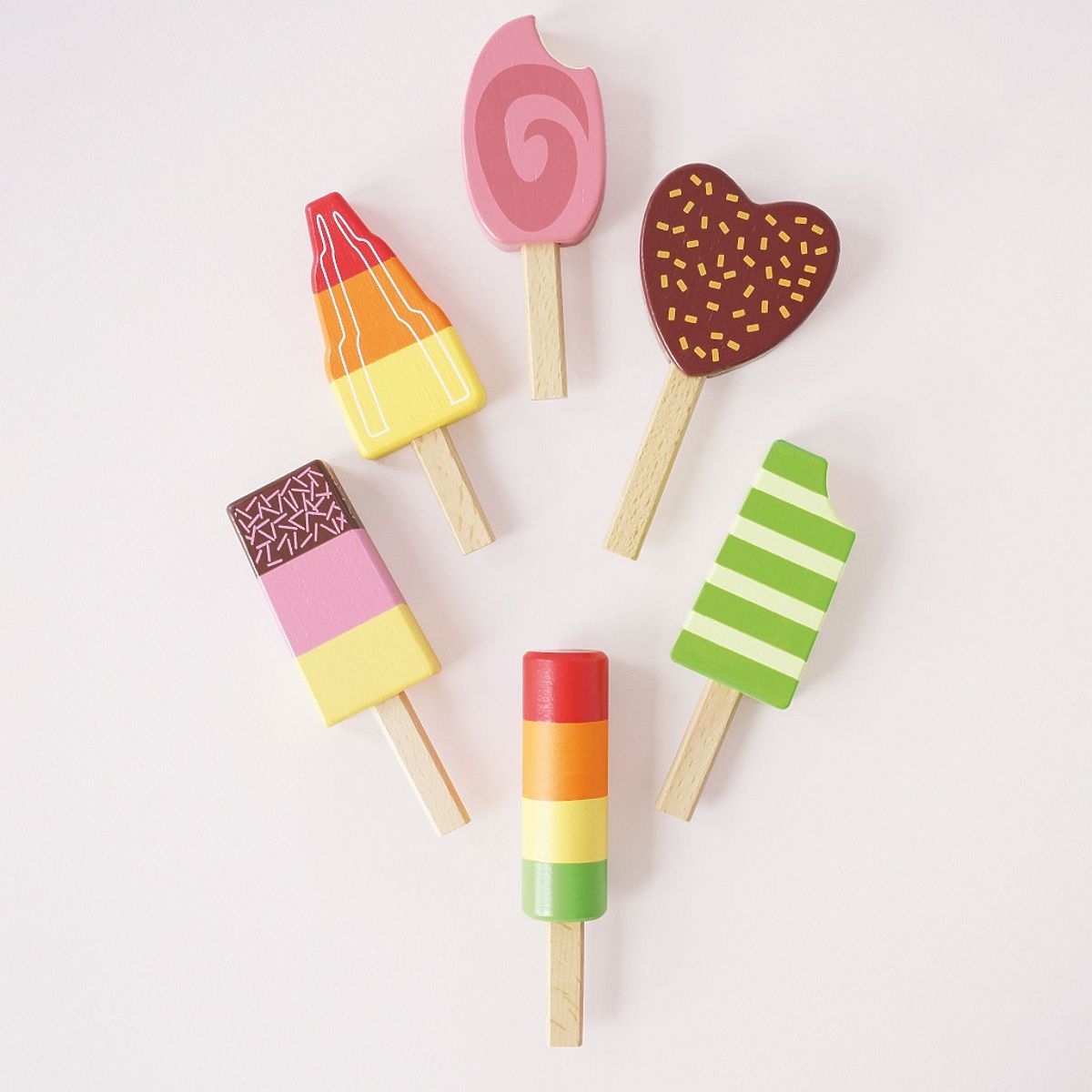Sada šiestich ručne maľovaných nanukov je perfektná pre predstavivú hru. Odolná hračka z pevného kaučukového dreva, ktorá obsahuje aj drevený stojan, v ktorom je možné nanuky servírovať. Čokoládové, ovocné aj smotanové, každý z nich má vlastný realistický dizajn plný detailov. Predstavivá hračka pomôže deťom s rozvojom jemnej motoriky a podporí ich v kreatívnej hre. Ideálny doplnok predajného alebo zmrzlinového stánku. Hračky s účelom Všetky hračky firmy Le Toy Van sú vyrobené s cieľom – aby dlho vydržali. Dizajnované s láskou skúsenými remeselníkmi za použitia etických praktík a udržateľných materiálov, ktoré sú šetrnejšie k našej planéte. Hlavné vlastnosti: vyrobené eticky z udržateľného FSC dreva testované podľa najprísnejších štandardov maľované netoxickými farbami na báze vody inšpiruje k predstavivej hre rozvíja kognitívne zručnosti Ocenenie hračky: Loved By Children Gold Award 2018 Honeybake kolekcia: Hračky v tejto kolekcii sú vhodné na objavovanie, pomôžu deťom s rozvojom predstavivosti, sociálnych a verbálnych zručností a kognitívnych funkcií. Tradičný dizajn s modernými detailmi deti určite bude baviť. Honeybake je kolekcia Le Toy Van, ktorá získala najviac ocenení za dizajn, kvalitu, bezpečnosť a tiež za vzdelávaciu a hernú hodnotu. Značka a certifikát FSC® (Forest Stewardship Council) zaručuje, že drevo, z ktorého bol produkt vyrobený, nebolo ťažené nelegálne a pochádza z lesov obhospodarovaných šetrným či prírode blízkym spôsobom, v ktorom sú dodržiavané prísne environmentálne a sociálne požiadavky. Značka FSC® na výrobku znamená, že svojím nákupom pomáhate chrániť lesy a podporujete šetrné, zodpovedné či prírode blízke hospodárenie, vďaka ktorému sú naše lesy stabilnejšie, zdravšie, majú prirodzenú druhovú skladbu a lepšie odolávajú negatívnym následkom klimatických zmien.