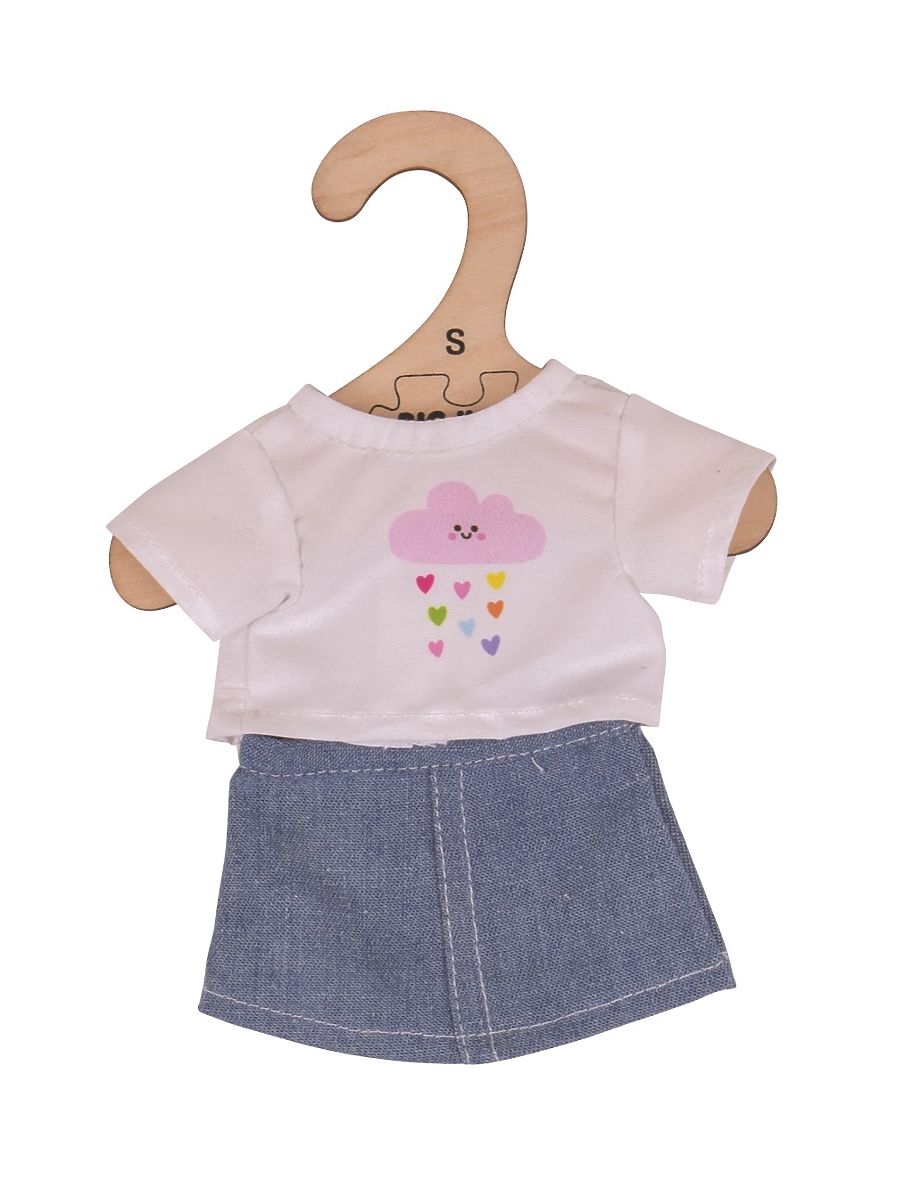 Babynabytek.sk » Hračky / Kočíky pre bábiky a príslušenstva / Bigjigs Toys Biele tričko s rifľovou sukňou pre bábiku 28cm