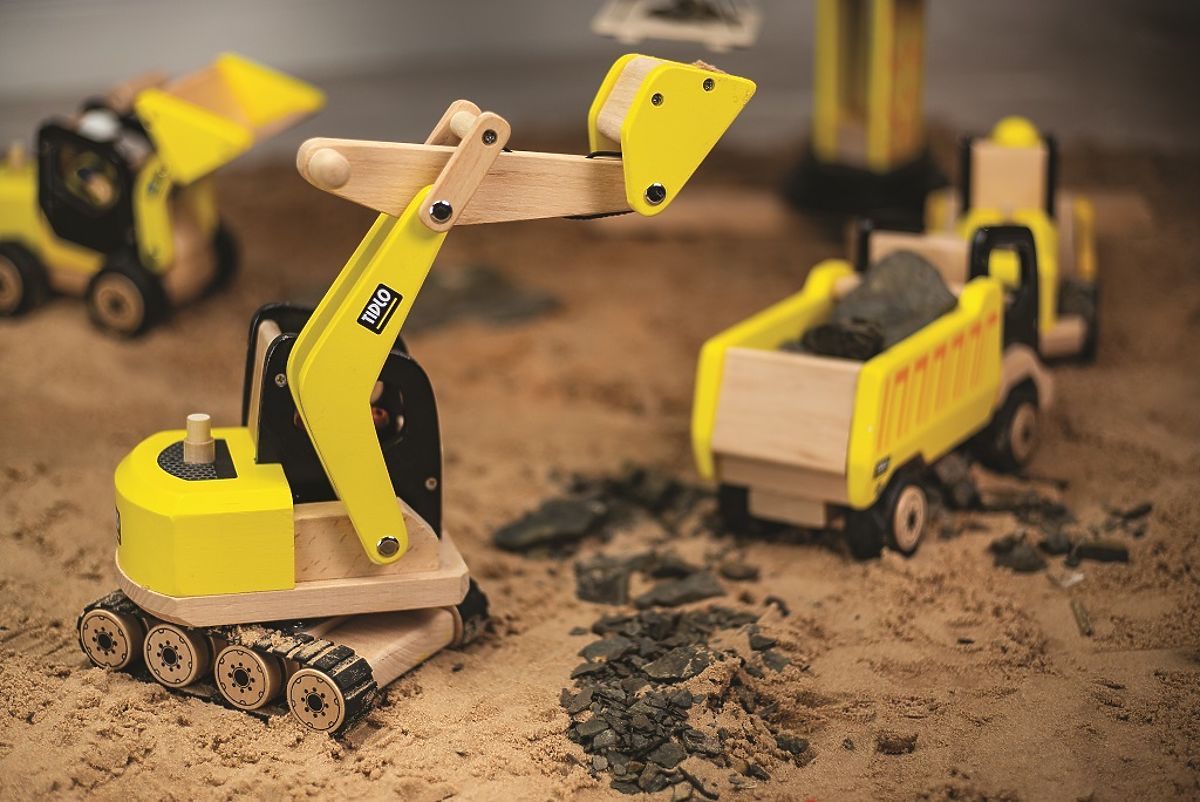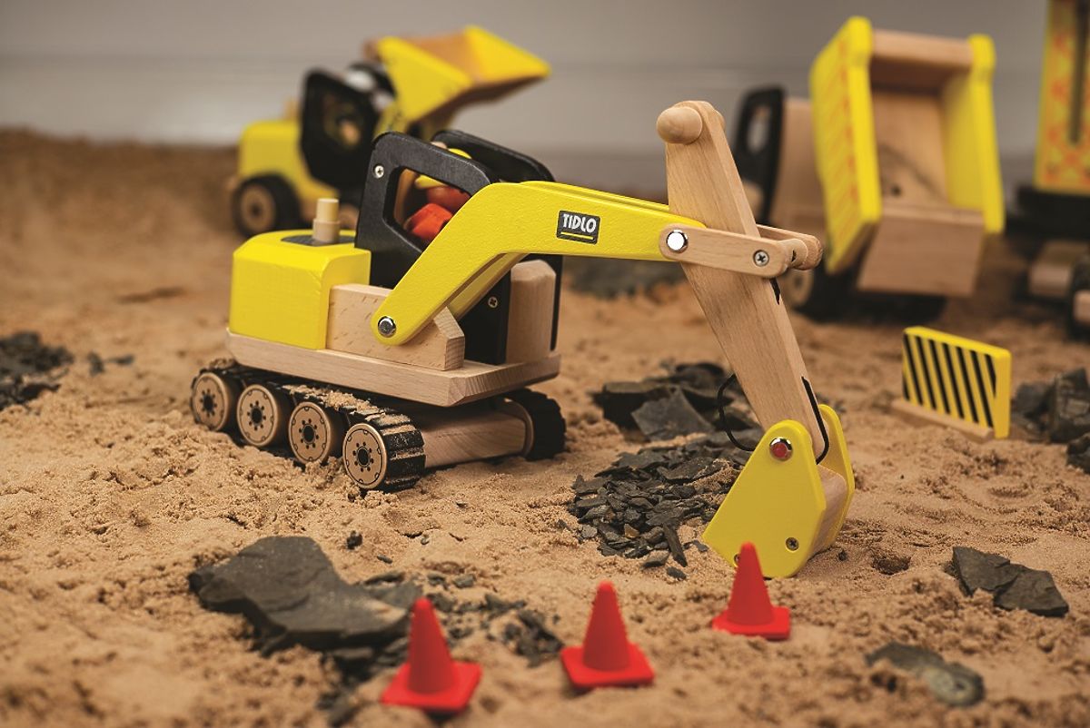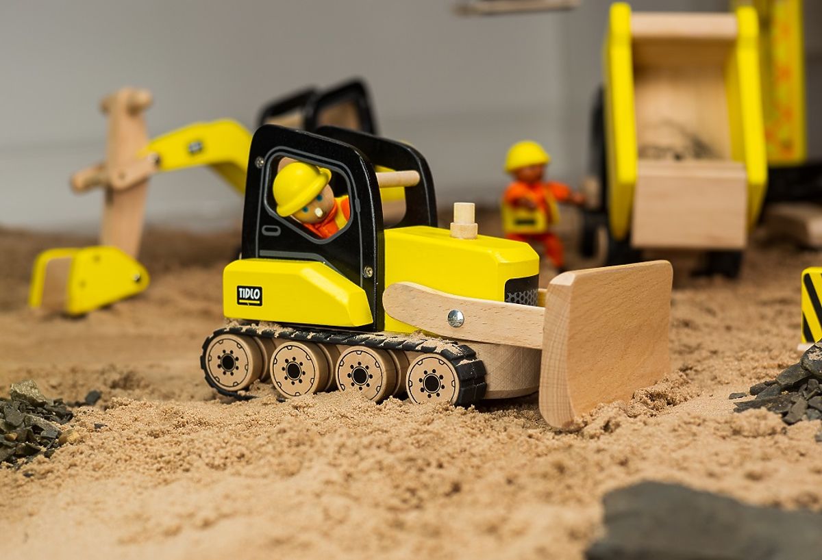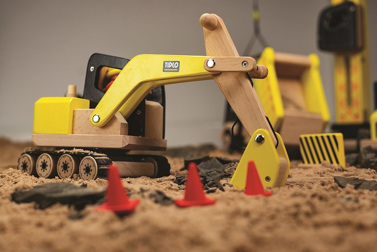 Tento masívny, detailný, drevený bager sa otáča o plných 360° a deti tak môžu plne funkčnou lyžicou naberať vo všetkých smeroch. Bager má dokonca aj funkčný pásový pohon, veľmi sa tak približuje reálnemu vozidlu. Má zaoblené tvary a je celkovo navrhnutý tak, aby bol jednoducho uchopiteľný malými detskými rukami. Je zhora otvorený, takže sa do neho dajú jednoducho vložiť figúrky staviteľov. Podporuje kreativitu a predstavivosť, rozvíja koordináciu ruka-oko a jemnú motoriku. Vyrobené z kvalitných materiálov z odpovedných zdrojov. Zodpovedá európskej bezpečnostnej norme. Hlavné vlastnosti: otáča sa o 360°, funkčný pásový pohon, jednoducho uchopiteľný, podporuje kreativitu a predstavivosť, jednoduché vloženie figúrok staviteľov