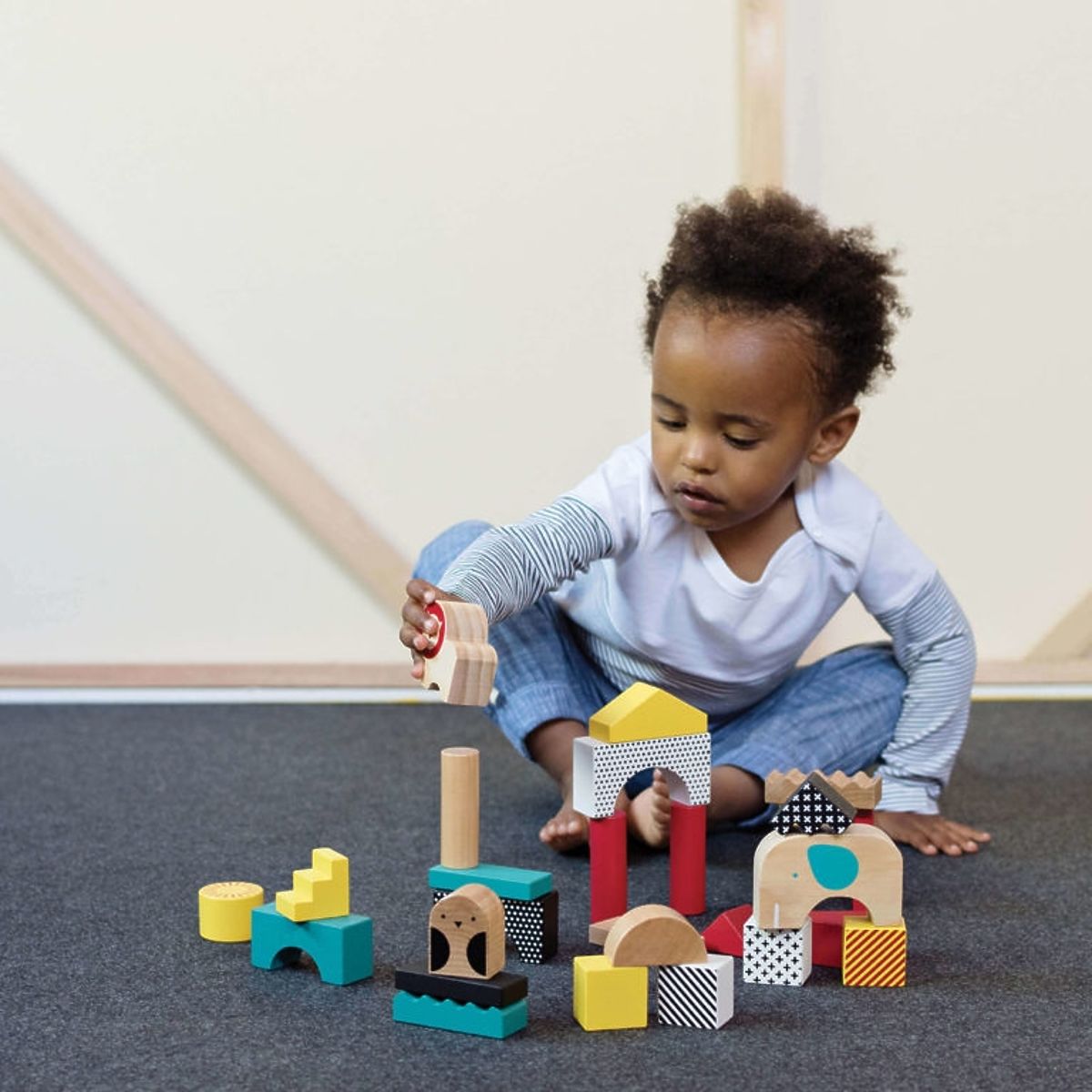 Skladajte, stavajte, zrúťte, opakujte. Robustné kocky majú jemne zaoblené okraje a sú ľahko uchopiteľné. Perfektné pre batoľatá. S 26 dielikmi v rôznych tvaroch a farbách môžu deti postaviť čokoľvek, kreativite sa medze nekladú. Obsahuje 14 tvarov a niekoľko vzorov, od bodiek po prúžky a 3 zvieratá. Hlavné vlastnosti: Rozvíja poznávanie tvarov, farieb a vzorovRozvoj koordinácie ruka-okoRozvoj poznávania farieb a tvarov aj počítania26 kociek v 5 žiarivých farbáchVyrobené z kvalitného dreva z odpovedných zdrojov a netoxických farieb na báze vodySpĺňa všetky bezpečnostné normy