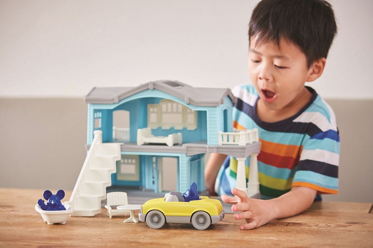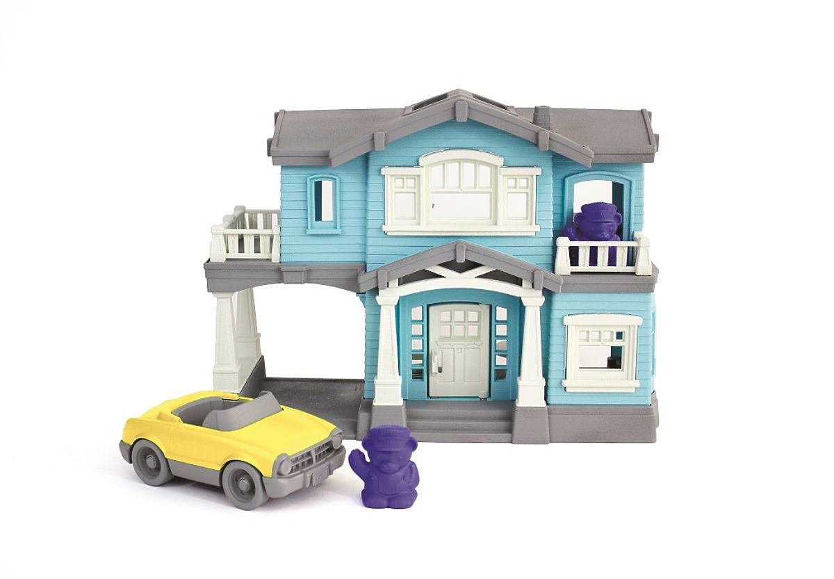 Pozrite sa, domček Green Toys pre hru plnú predstavivosti a kreativity! Má dve poschodia, v sade tiež žltý kabriolet, 2 postavičky myší, schodisko, posteľ, vaňu, stôl a 2 stoličky. Posuvné schodisko môžete na druhom poschodí umiestniť kamkoľvek, na balkón alebo na zadnú stranu domu. Vaňa, posteľ, stôl a stoličky sa tiež zmestia do ktoréhokoľvek izby. Dom má otvorenú zadnú stranu a balkóny, deti si ho môžu zariadiť podľa vlastnej predstavy. Podporí ich v kooperatívnej a interaktívnej hre. Diely sa do domu jednoducho zmestia, môžu tam teda zostať aj mimo hry a ušetria vám tak úložný priestor. Hračka je netoxická, neobsahuje BPA, PVC, ftaláty, ani vonkajší náter. Vyrobené zo 100% recyklovaného plastu. Ak hľadáte plastové hračky na piesok alebo do vody a zároveň vám veľmi záleží na bezpečnosti vašich detí, pozrite sa na výrobky americkej značky Green Toys. Vyrába ekologické hračky, ktoré sú populárne nielen v USA, firma so svojimi výrobkami žne neuveriteľné úspechy po celom svete. Green Toys, to je predovšetkým zodpovedná výroba hračiek z recyklovaného plastu fliaš od mlieka. Hlavné vlastnosti: dom, 2 postavičky, kabriolet, schodisko, posteľ, vaňa, stôl, 2 stoličky všetky diely sa zmestia do domu bezpečný materiál bez obsahu BPA, PVC, ftalátov vhodné do umývačky vyrobené zo 100% recyklovaného plastu v USA