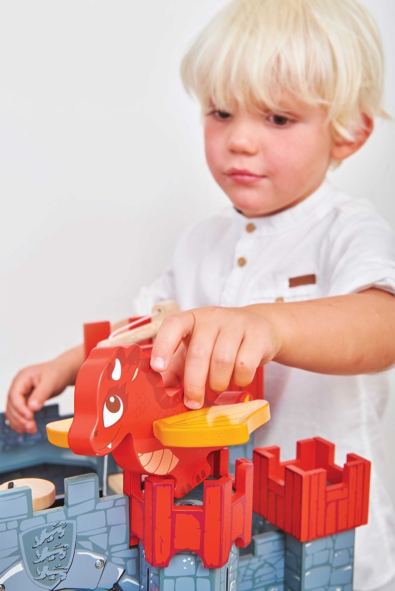 Tento roztomilý dráčik je pripravený na všetky dobrodružstvá! Je vyrobený z masívneho dreva a maľovaný v nápadných červených tónoch. Jeho krídla sú k telu pripevnené gumičkou, takže nimi dokáže mávať! Dráčik je maľovaný netoxickými farbami na báze vody, vyrobený je z udržateľného dreva. Hračka bez obsahu plastu, ktorá sa bude hodiť do hradov a zámkov nielen od Le Toy Van. Hlavné vlastnosti: vyrobené eticky z udržateľného dreva, testované podľa najprísnejších štandardov, maľované netoxickými farbami na báze vody, inšpiruje k predstavivej hre, pomáha s rozvojom sociálnych zručností a reči. Kolekcia hradov: Drevené hrady od Le Toy Van deti povzbudia pri predstavivej hre, môžu si s nimi vymýšľať vlastné dobrodružné scenáre. Každý hrad v kolekcii má mnoho krásnych detailov, podporuje deti v hre na role a zdokonaľuje ich motoriku.