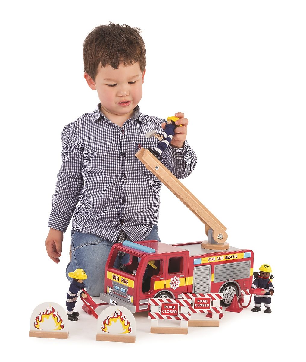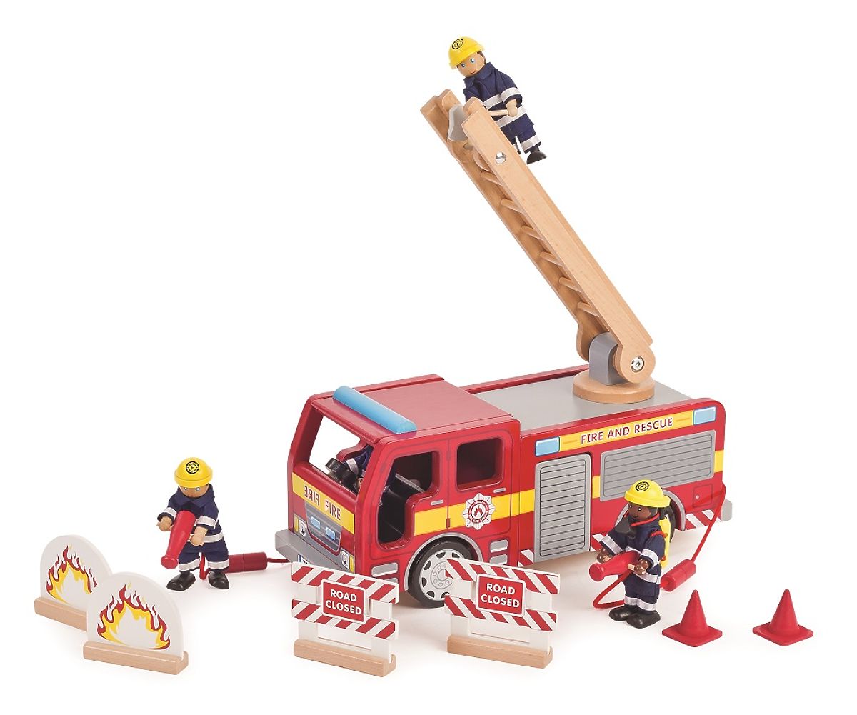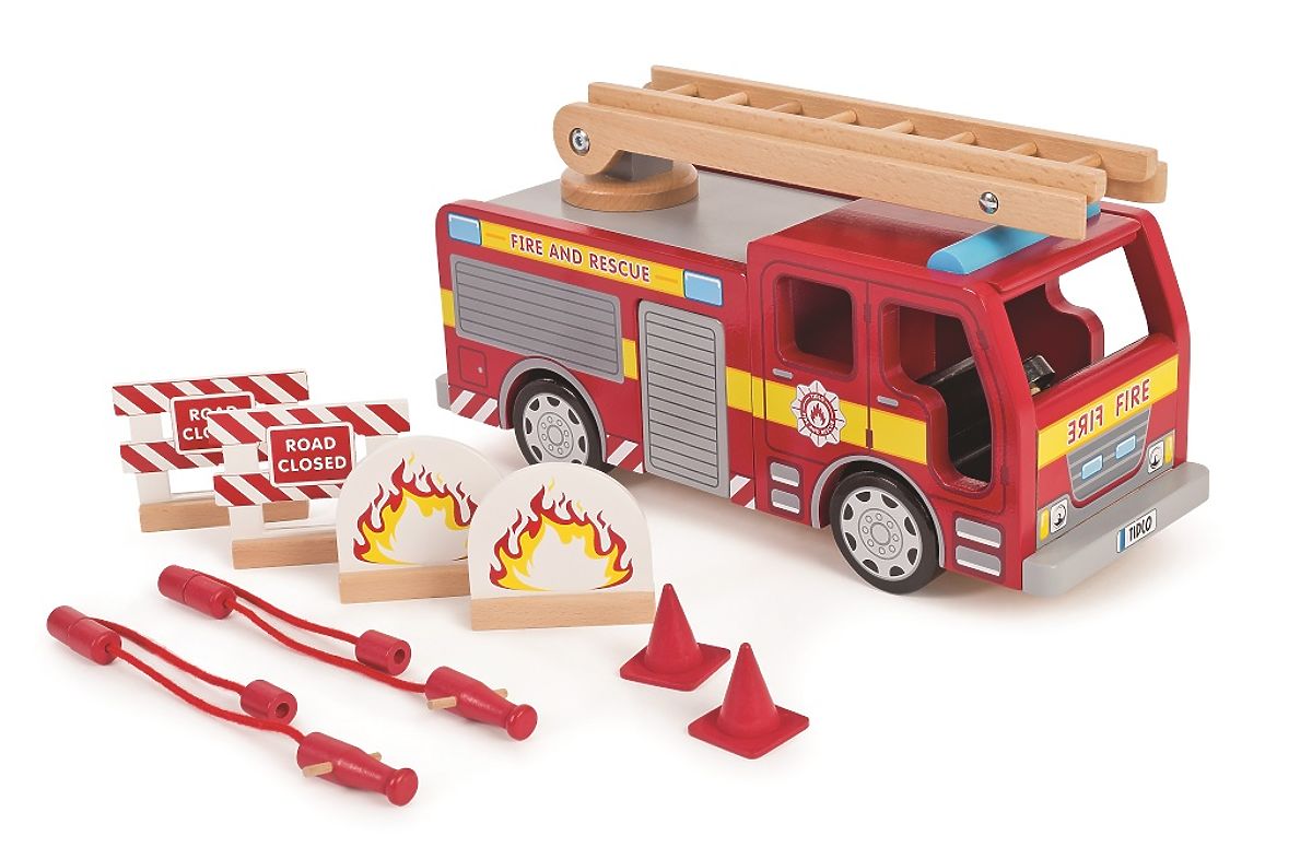 Drevené hasičské auto s vysúvacím rebríkom a otvárateľnými dverami. .. viac