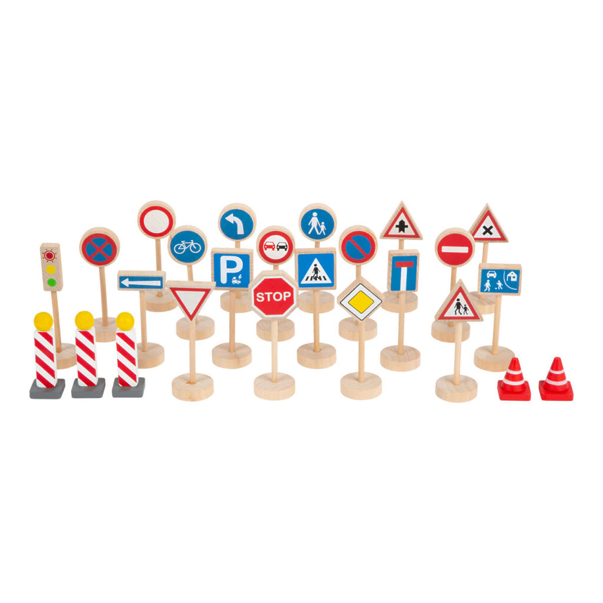 Jazdite bezpečne! Tieto medzinárodné dopravné značky sú vyrobené z dreva. Budú skvelým doplnkom pre dopravný koberec či vláčikodráhu vášho dieťaťa. Hračka je nielen krásna, ale zároveň deti naučí niečomu novému – dôležitosti dopravných pravidiel. Graficky zladené s Prémiovým 7 dielnym parkoviskom (11676), sú pre neho dokonalým doplnkom. Hlavné vlastnosti: 25 značiek medzinárodné piktogramy