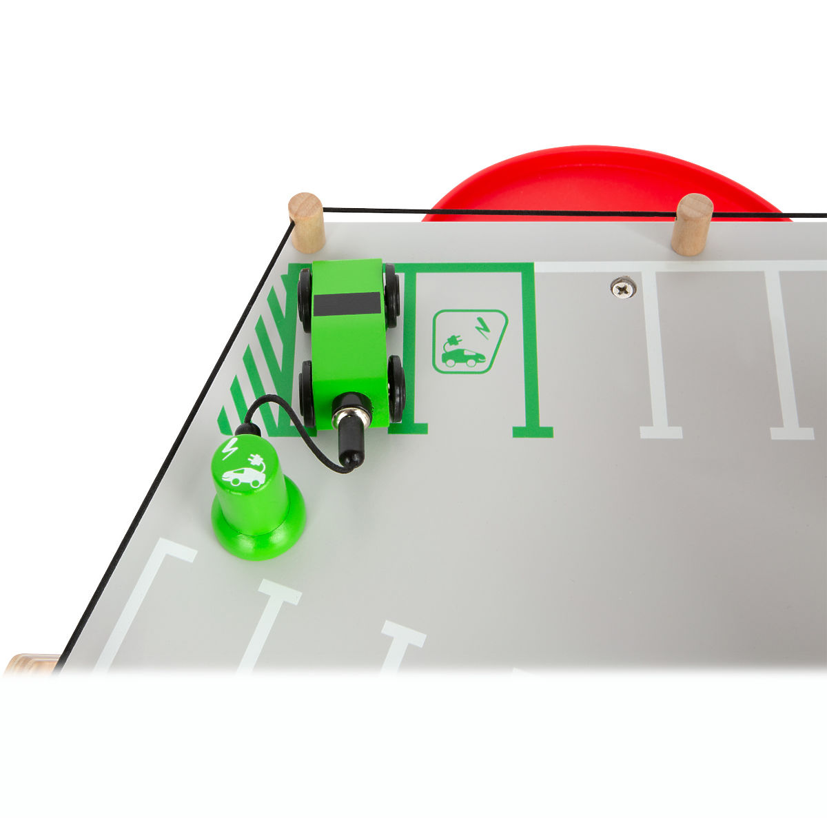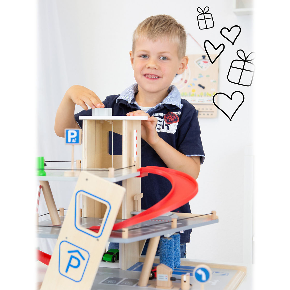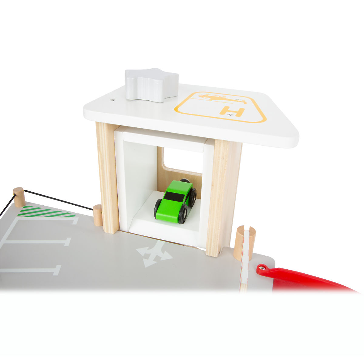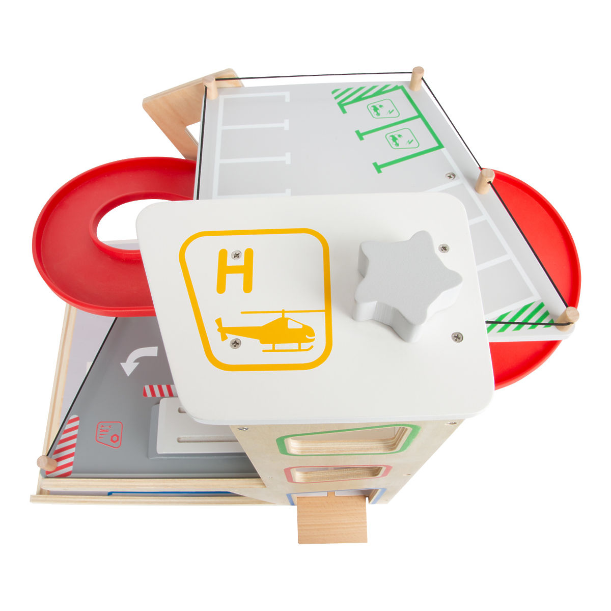 Parkujte, tankujte, umývajte alebo opravujte, a to všetko s jednou garážou! Ponúka tri bohato vybavené poschodia prepojené atraktívnym funkčným výťahom a zábavnými, na seba plynulo nadväzujúcimi rampami. Jej súčasťou je dvojica autíčok, ktoré môžu pri fantastických hrách využiť pumpu, nabíjaciu stanicu, zdvíhaciu rampu alebo umývačku s realistickými kefami. Každá z úrovní je navyše vybavená mechanickou závorou pre dokonale pútavé zážitky. Poschodia sú opatrené gumovým hrazením, ktoré dodávajú jazde autíčok na dynamike a bránia ich vypadnutiu. Garáž je podrobne zdobená mnohými farebnými ikonami a značením, ktoré do hier vnesú aj poučenie. Je vyrobená z pevnej, odolnej drevenej preglejky s doplnkami z masívneho dreva a nezávadného plastu. Výrobok vyžaduje montáž, dodáva sa s obrázkovým návodom na zostavenie. Hlavné vlastnosti: garáž a 2 autíčka, 3 poschodia prepojené funkčným výťahom a 2 rampami, pumpa, nabíjacia stanica, zdvíhacia rampa, umývačka a 3 závory, kompatibilné s vláčkodráhami a súvisiacim príslušenstvom iných výrobcov, bohato zdobené jednoduchými ikonami a značením, pevné a odolné drevené prevedenie