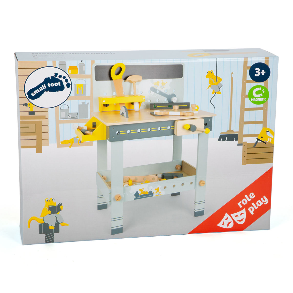 Pílenie pílou, otáčanie skrutkami, zatĺkanie kladivom! Spoločne s roztomilými Miniwobmi si deti otestujú svoju zručnosť a jemnú motoriku. Na ponku nájdete vybavenie ako 1 kotúčová píla, 1 elektrický skrutkovač s 3 nadstavcami, 1 vodováha, 1 zverák, 1 kladivo, 1 kľúč, 1 píla, 2 krabice s otvormi pre skrutky, 6 stavebných líšt, 16 skrutiek, 16 matíc, 3 klince. Deti si môžu svoj projekt načrtnúť na tabuľu, svoje náradie uložiť do malých boxov, ktoré môžu zavesiť z boku ponku. Deti vám dokonca môžu pomôcť so zložením ponku! Minimalistické farby, veľa viditeľného dreva, jednoducho perfektná hračka pre malých kutilov a kutilky. Hlavné vlastnosti Úložné boxy, ktoré môžete našróbovať z boku ponkuOsem ks drevených nástrojov a rôzne doplnkyTabuľa na načrtnutie projektuDeti môžu pomôcť so zložením ponkuPekné detské ilustrácie Miniwob MiniwobZoznámte sa s malými wobmi, nadšenými krokodílími kutilmi! S ich pomocou ide všetka práca ako po masle a žiadna stavba nie je dosť veľká a premyslená. Pestrá rada nástrojov a náradia poskytuje dokonalú zábavu pre všetkých malých remeselníkov, prostredníctvom ktorých môžu byť kreatívni a realizovať všetky svoje fantastické nápady. Jednotlivé sady je možné medzi sebou kombinovať a rozširovať s rastúcimi zručnosťami detí. Vďaka jednotnému farebnému motívu a vyobrazeniam roztomilých Wobov je možné vytvoriť jedinečný a ucelený dielenský kútik, ktorý bude zároveň hodnotnou stavebnicou rozvíjajúcou zručnosť a predstavivosť.