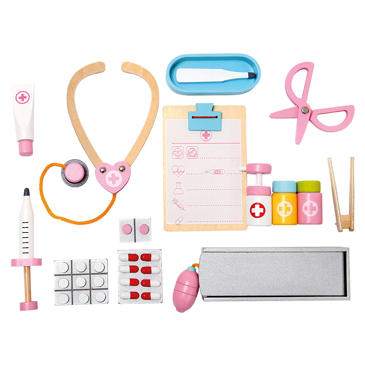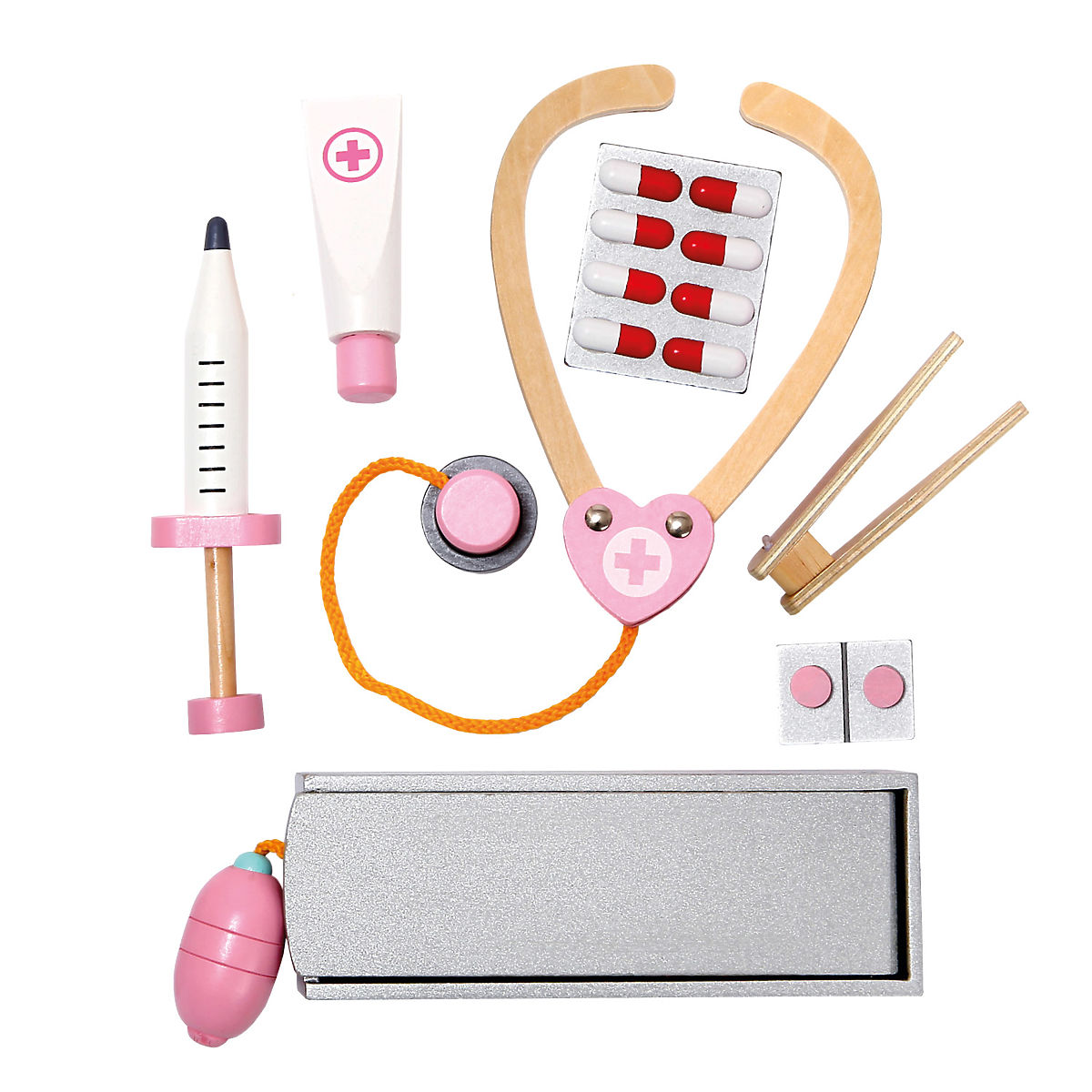 Drevený lekársky kufrík pre malých lekárov. Ideálny na hranie, pri ktorom sa deti skutočne dlho zabavia. Môžu tak objavovať svet dospelých a užiť si pritom veľa zábavy. Deti kufrík ľahko otvoria, vyberú z neho potrebné lekárske náčinie a po skončení hry ho opäť zložia. Rozsiahle 16-dielne príslušenstvo je dobre zabezpečené širokými gumenými pútkami. Hravou formou tak trénujú jazykové zručnosti, jemnú motoriku a podporujú svoju predstavivosť. Detská zábava tak pomáha zmenšiť strach a obavy z návštevy lekára. Upozornenie: Použitie deťmi do 3 rokov len pod dohľadom dospelej osoby. Hlavné vlastnosti: rozsiahle 16-dielne príslušenstvo, deti pri hre trénujú jemnú motoriku, podporujú predstavivosť, pomáha zmenšiť strach a obavy z návštevy lekára, vhodné pre deti od 3 rokov