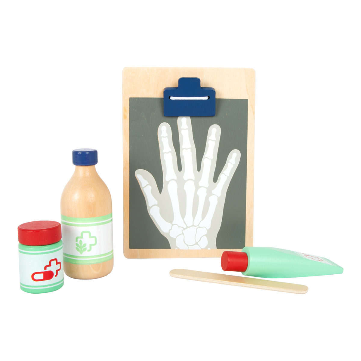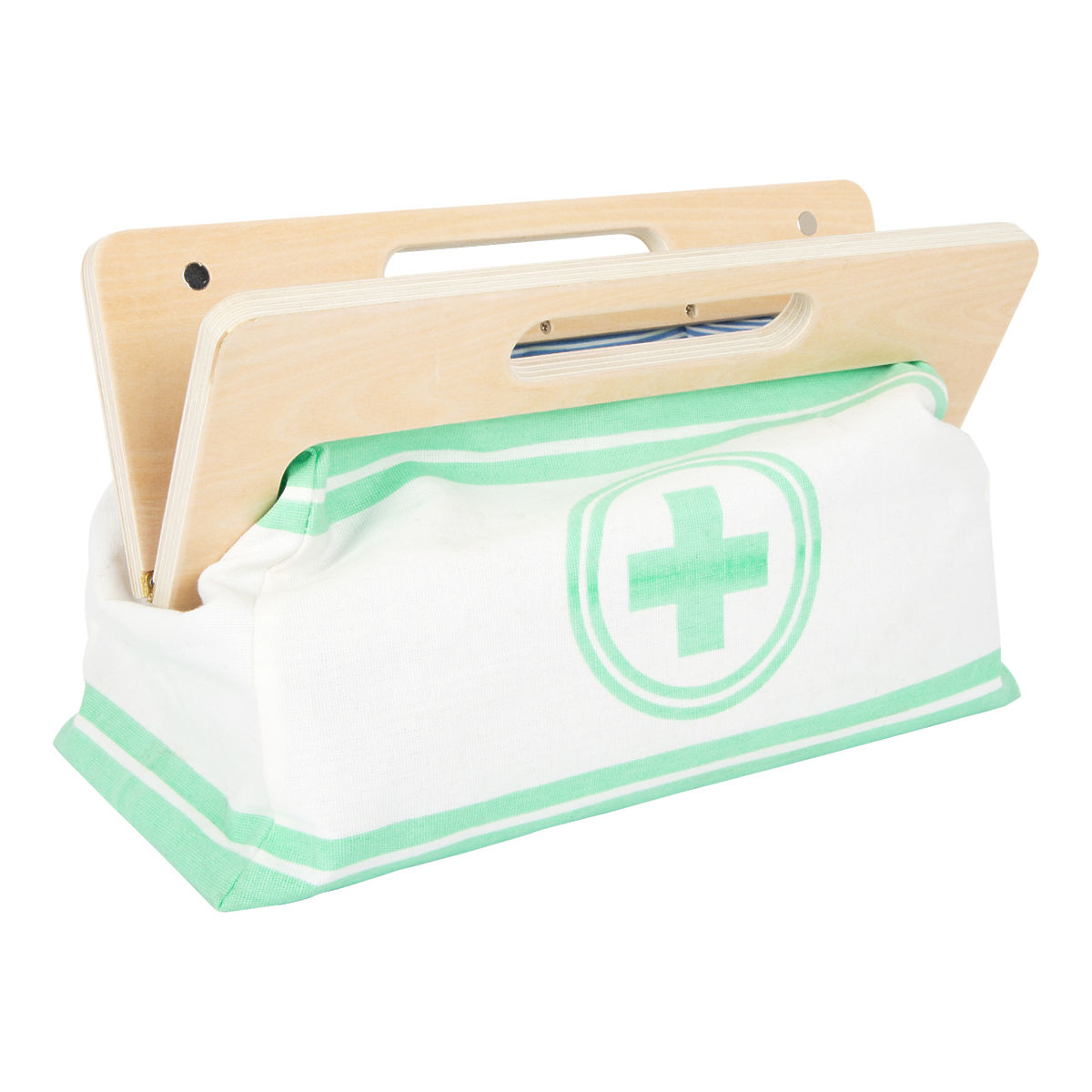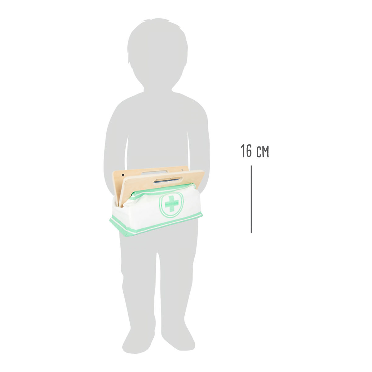 S touto štandardnou lekárskou taškou budú mladí nádejní lekári perfektne vybavení. Taška je vyrobená z mäkkého textilu, je pekná na pohľad a tiež veľmi funkčná. Dá sa ľahko otvoriť vďaka magnetom, je vyrobená z dreva. Vo vnútri tašky nájdete všetko vybavenie pre predstavivé ošetrenie pacientov: stetoskop, teplomer, striekačku a mnoho ďalšieho – všetko vyrobené z pevného dreva! Najlepšími doplnkami sú pravdepodobne tlakomer s manžetou a balónikom a otoskop s lupou. Tento rozsiahly set lekárskych hračiek obsahuje mnoho „skutočných“ lekárskych nástrojov a prístrojov, s ktorými sa deti naozaj vyhrajú. Ilustrácie na lekárskych pomôckach deťom pomôžu rozpoznať nástroje a tiež im možno zjednodušia ich použitie. Hlavné vlastnosti: Lekárska taška s jasne viditeľným drevomTlakomer s manžetou a balónikomTeplomer s nastaviteľnou teplotouOtoskop so skutočnou lupouFľaštička na lieky so skrutkovacím viečkomNáplasti na suchý zipsZnovu použiteľné a prateľné detské textilné rúškyĎalšie vybavenie: injekčná striekačka s pohyblivým mechanizmom, stetoskop, dezinfekcia s pumpičkou, fľaštička s liekmi a lyžička, pinzeta, skalpel, reflexné kladivo