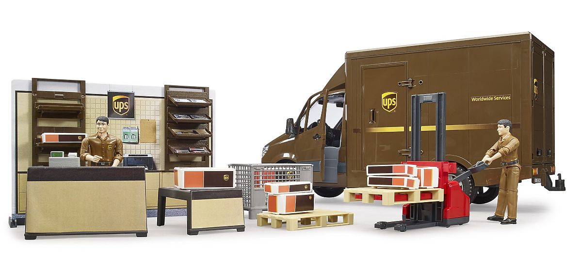 Zásielkovňa UPS s figúrkou a vybavením od Bruder. .. viac
