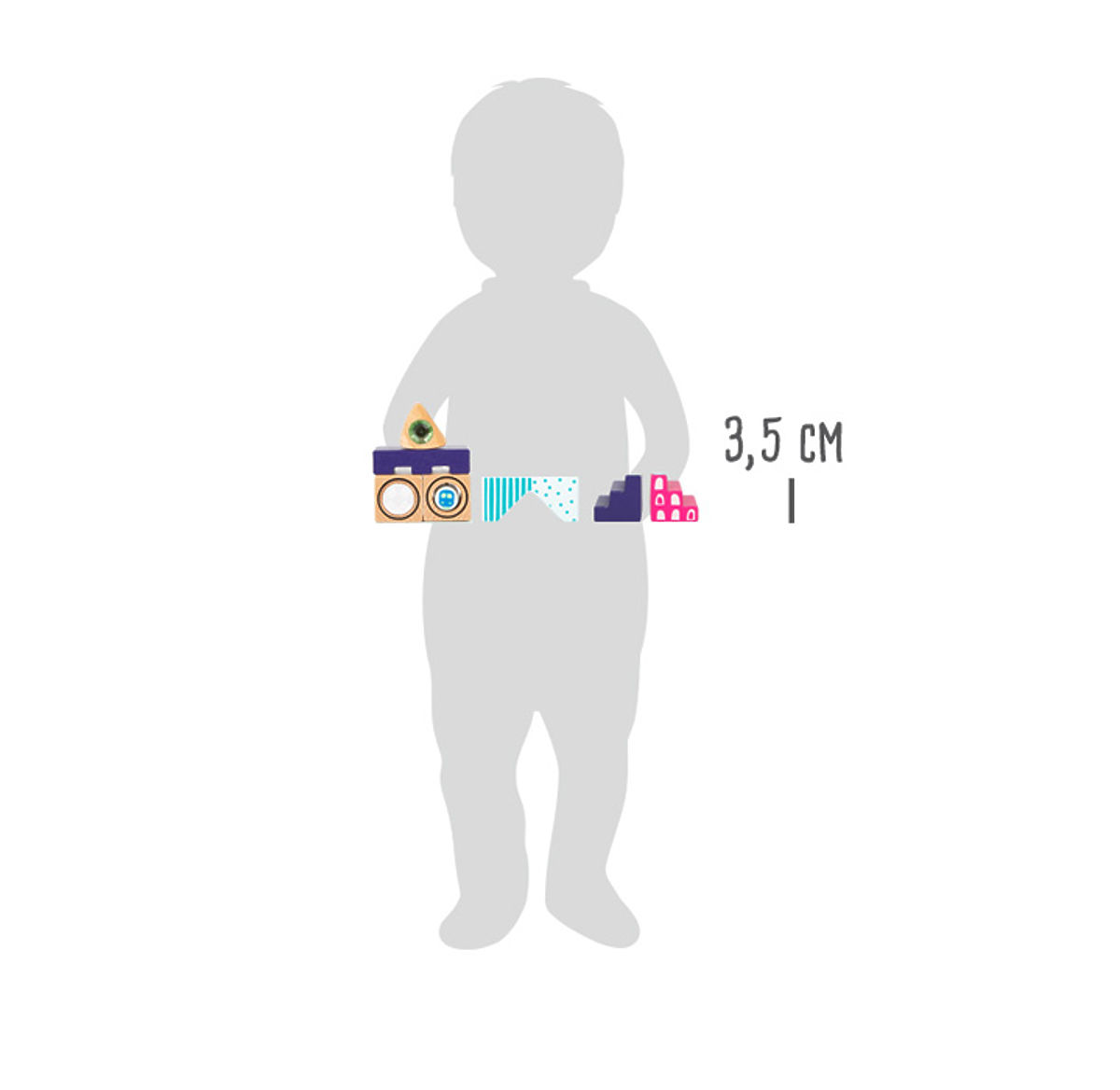 Ideálne na stavanie, stohovanie, ukladanie a objavovanie! Fantasy kocky z dreva určite nadchnú aj tie najmenšie deti. Vzrušujúce vizuálne a haptické efekty, hrkálky, hranoly, pestré farby a tvary, kamienky a idúci vlak stimulujú zmysly a zabezpečujú dlhodobú zábavu. Pri skladaní si malí stavitelia precvičujú koordináciu pohybov a jemnú motoriku, pričom vznikajú najnápaditejšie umelecké diela. Ideálne na kombináciu s prírodnými drevenými kockami! Vysoko kvalitné spracovanie, ľahké uchopenie a ideálne pre detské ruky. V pevnom darčekovom balení môžu byť kocky uložené bezpečne! S týmito špeciálnymi, zmyslovo stimulujúcimi stavebnými kockami žiaria detské oči radosťou! Hlavné vlastnosti: Senzorické kocky stimulujúce zmysly, Pútavé farby a tvary kociek