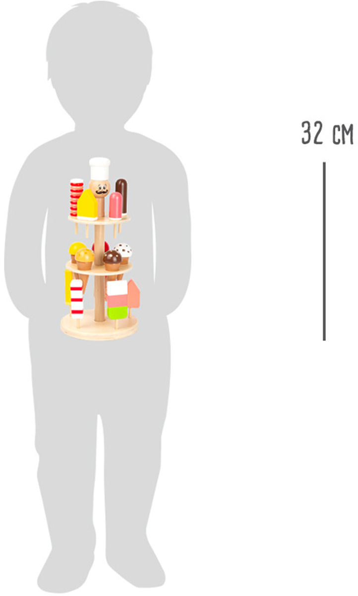 Mňam ... zmrzlina! Tento láskyplne navrhnutý stojan na zmrzlinu z masívneho dreva spĺňa všetky zmrzlinové priania. Tu si deti môžu vybrať svoju obľúbenú zmrzlinu. Či už ide o nanuky alebo zmrzlinu vo vaflovom kornútku - nie je to ľahké rozhodnutie! Rôzne príchute zmrzliny možno ľahko umiestniť do stojanu na zmrzlinu, čo z nich robí skutočný pútač na predajnom pulte v obchode alebo v detskej kuchynke či kaviarničke. Hlavné vlastnosti: Podporuje sociálne zručnosti a jemnú motoriku detí