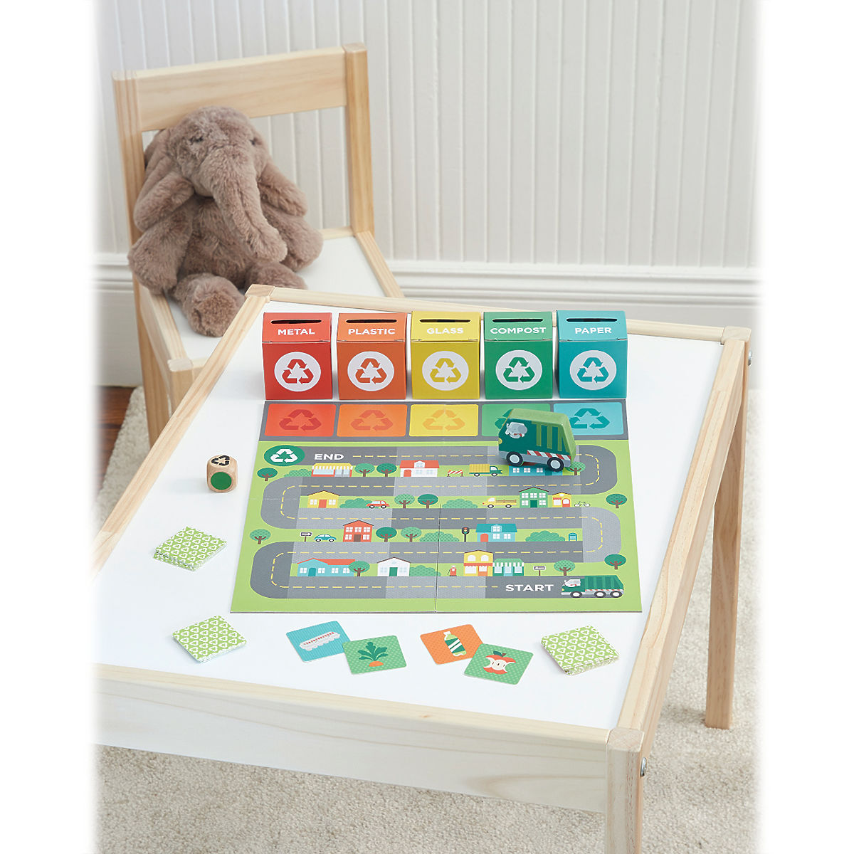 Recyklácia nikdy nebola taká zábavná ako s touto cenami ovenčenou hrou. Kov, sklo alebo papier? Triedte, než si pre ne prídu! Hrajte spolu alebo proti sebe a rozvíjajte ekologické cítenie detí. Hra je vhodná pre deti od 4 do 8 rokov a priemerne trvá 15 minút. Je vyrobená z recyklovaných materiálov potlačených nezávadnými rastlinnými atramentmi. Hlavné vlastnosti: herný plán, 5 kontajnerov, kartičky, kocka a nákladiak. Ocenenia hračky: National Parenting Product Award 2021, PureWow's Happy Kid Award 2021, Oppenheim Toy Portfolio Gold Seal Award 2021, Made for Mums Bronze Award 2021.