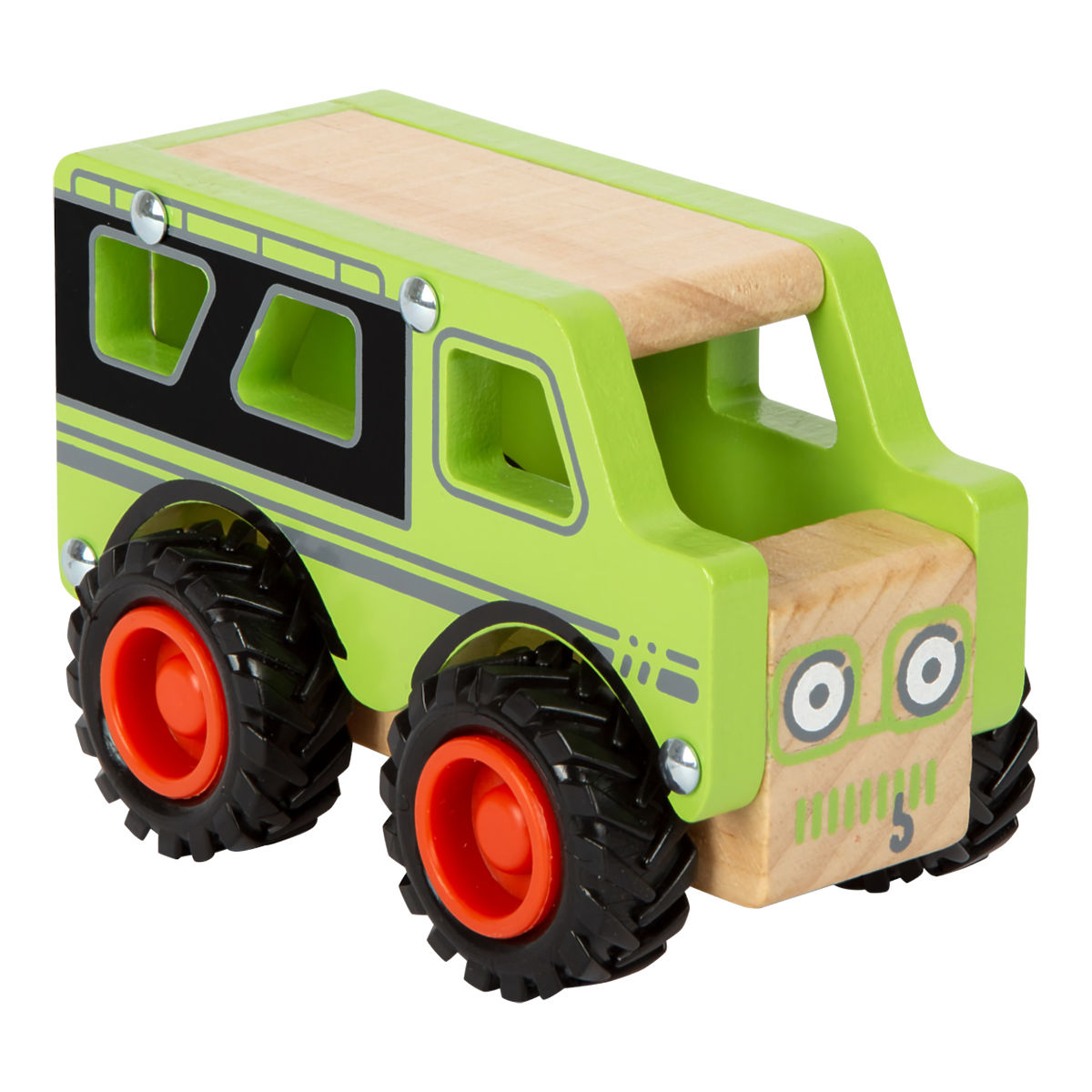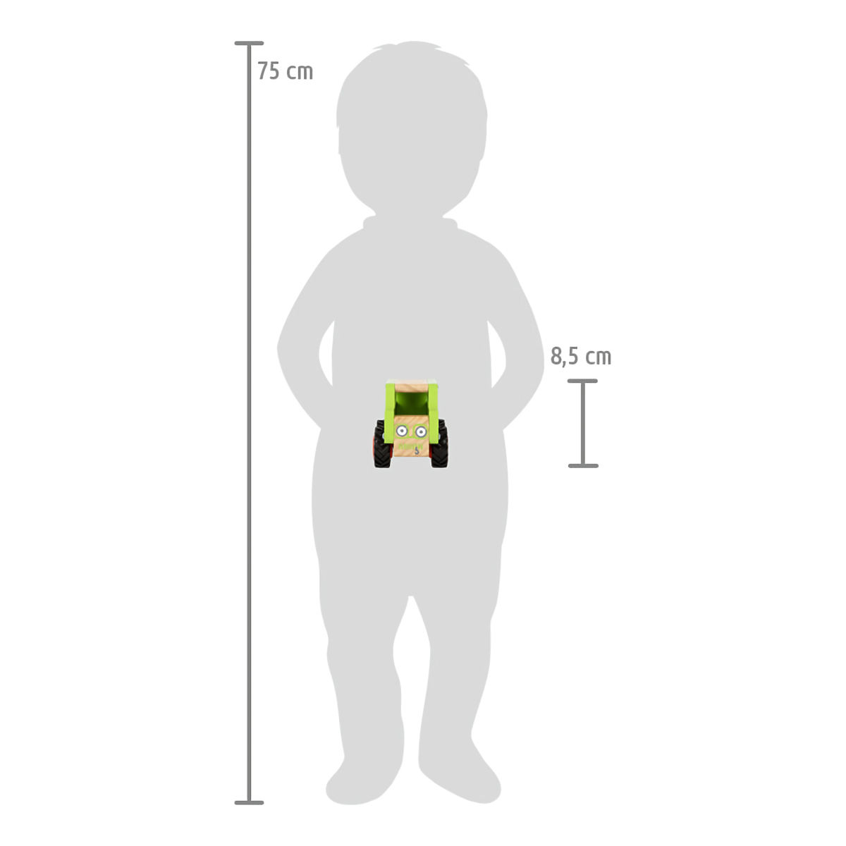 Robustné a odolné autíčko vyrobené z masívneho, udržateľne získaného dreva. Disponuje priestrannou, otvorenou kabínou, do ktorej možno usadiť figúrku vodiča. Gumové kolesá autíčka zabezpečujú kultivovaný tichý chod na všetkých typoch povrchov. Hlavné vlastnosti: robustná a odolná konštrukcia, otvorená a priestranná kabína, tichý chod, vyrobené zo 100% FSC® dreva. Značka a certifikát FSC® (Forest Stewardship Council) zaručuje, že drevo, z ktorého bol produkt vyrobený, nebolo vyťažené nelegálne a pochádza z lesov obhospodarovaných šetrným či prírode blízkym spôsobom, v ktorom sú dodržiavané prísne environmentálne a sociálne požiadavky. Značka FSC® na výrobku znamená, že svojím nákupom pomáhate chrániť lesy a podporujete šetrné, zodpovedné či prírode blízke hospodárenie, vďaka ktorému sú naše lesy stabilnejšie, zdravšie, majú prirodzenú druhovú skladbu a lepšie odolávajú negatívnym následkom klimatických zmien.