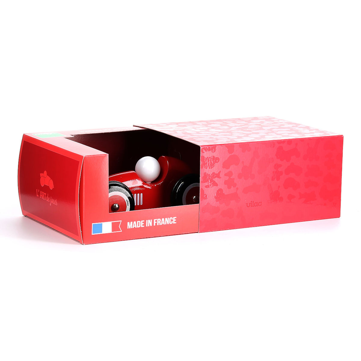 Veľké drevené autíčko jedinečných tvarov a farieb, ktoré v každom, malom aj veľkom, vodičovi vzbudí nadšenie a chuť pretekať. Svojím prevedením ľahko osloví dospelých zberateľov a aj vďaka rozmerom sa hravo stane neprehliadnuteľným doplnkom interiéru. Súčasti autíčka sú z masívneho dreva lakovaného tradičným procesom ponárania do kúpeľov s farbou. Robustné kolesá sa vyznačujú hladkým chodom a sú opatrené gumovými krúžkami, vďaka ktorým hračka pri pohybe nepôsobí zbytočný hluk. Vyrobené vo Francúzsku, dodávané v prémiovej krabičke. Hlavné vlastnosti: jedinečný dizajn a spracovanie, tichý a kultivovaný chod, vyrobené vo Francúzsku