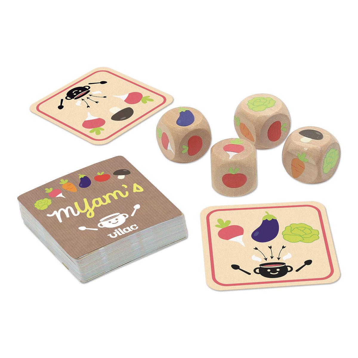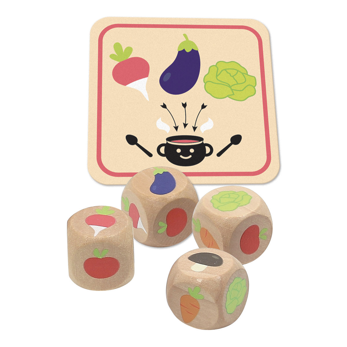 Nielen vegáni si užijú túto zábavnú zeleninovú hru! Vytiahnite si kartičku s receptom a pokúste sa na kockách hodiť zobrazenú kombináciu. Kto bude mať viac šťastia a zhromaždí viac kariet? Vďaka jednoduchým pravidlám a obrázkom si zahrajú aj najmenší, starší môžu hru okoreniť aj počítaním a jednotlivým druhom zeleniny priradiť rôznu hodnotu. Hlavné vlastnosti: 55 hracích kartičiek a 4 kocky pre 2–6 hráčov atraktívny dizajn a spracovanie Skrátený návod hry: Cieľom hry je za pomoci kociek vytvoriť kombinácie zodpovedajúce kartičkám receptov. Rozdeľte 3 kartičky receptov každému hráčovi. Hráči sa na ťahu striedajú. Ťah začína hodom kociek. Hráči majú 3 hody za každý ťah. Pri prvom hode hodia všetkými tromi kockami, pri ďalších môžu hádzať všetkými alebo len niektorými kockami. Ak hráč hodí kombináciu, ktorá sa zhoduje s jednou z jeho kartičiek receptov, túto kartu získa. Potom si vytiahne kartu novú. Víťazí hráč, ktorý ako prvý získa 10 kartičiek receptov.