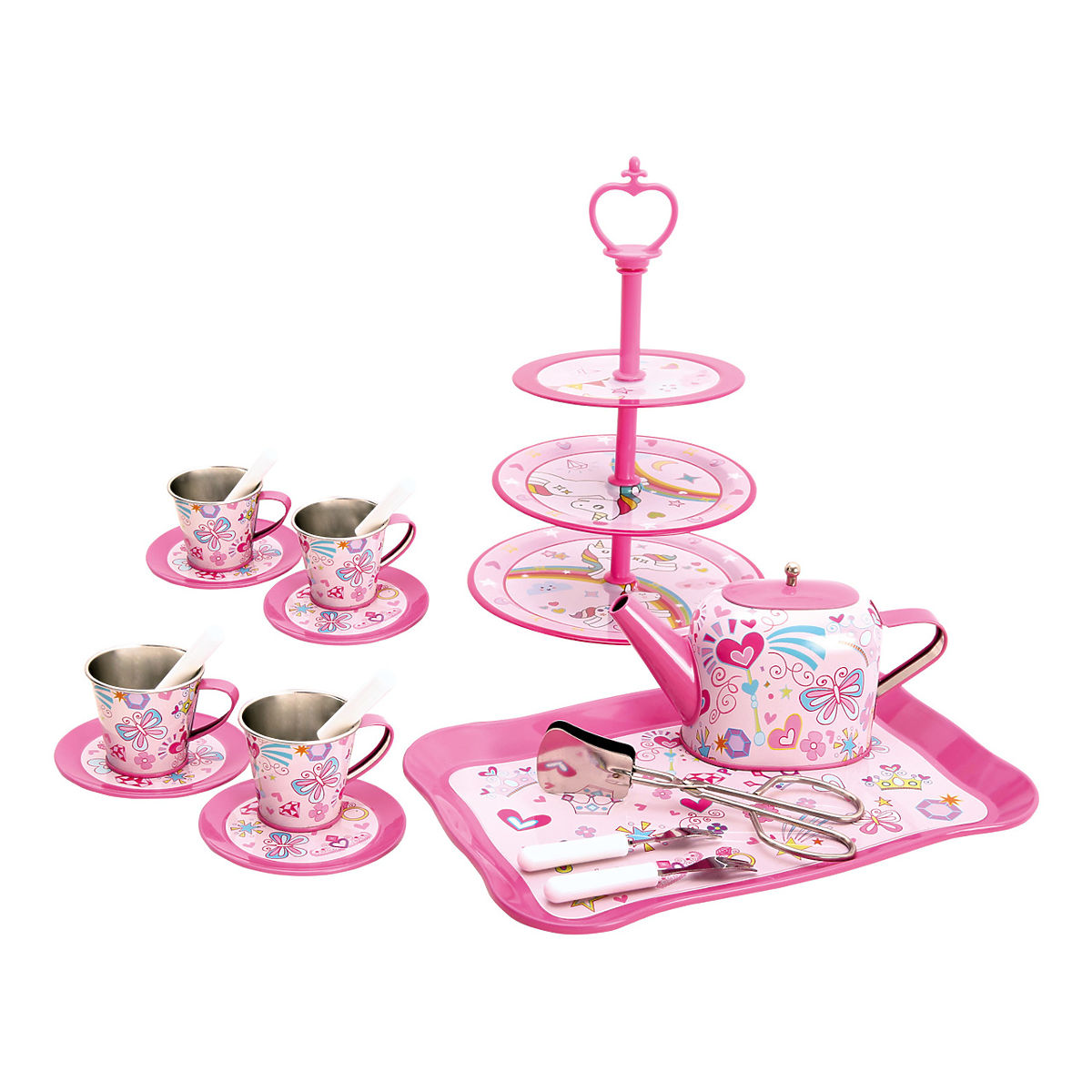 Čas na kúzelný čajový večierok pre rodičov, bábiky a plyšových kamarátov! S bohatou čajovou súpravou môžu deti rozvíjať fantáziu a svoje sociálne aj komunikačné zručnosti. Súprava je detailne dekorovaná, vyrobená z odolného ľahkého kovu a nezávadného plastu. Hlavné vlastnosti: súprava pre 4 osoby, celkom 35 dielov, odolné prevedenie