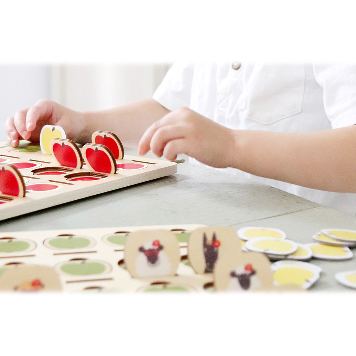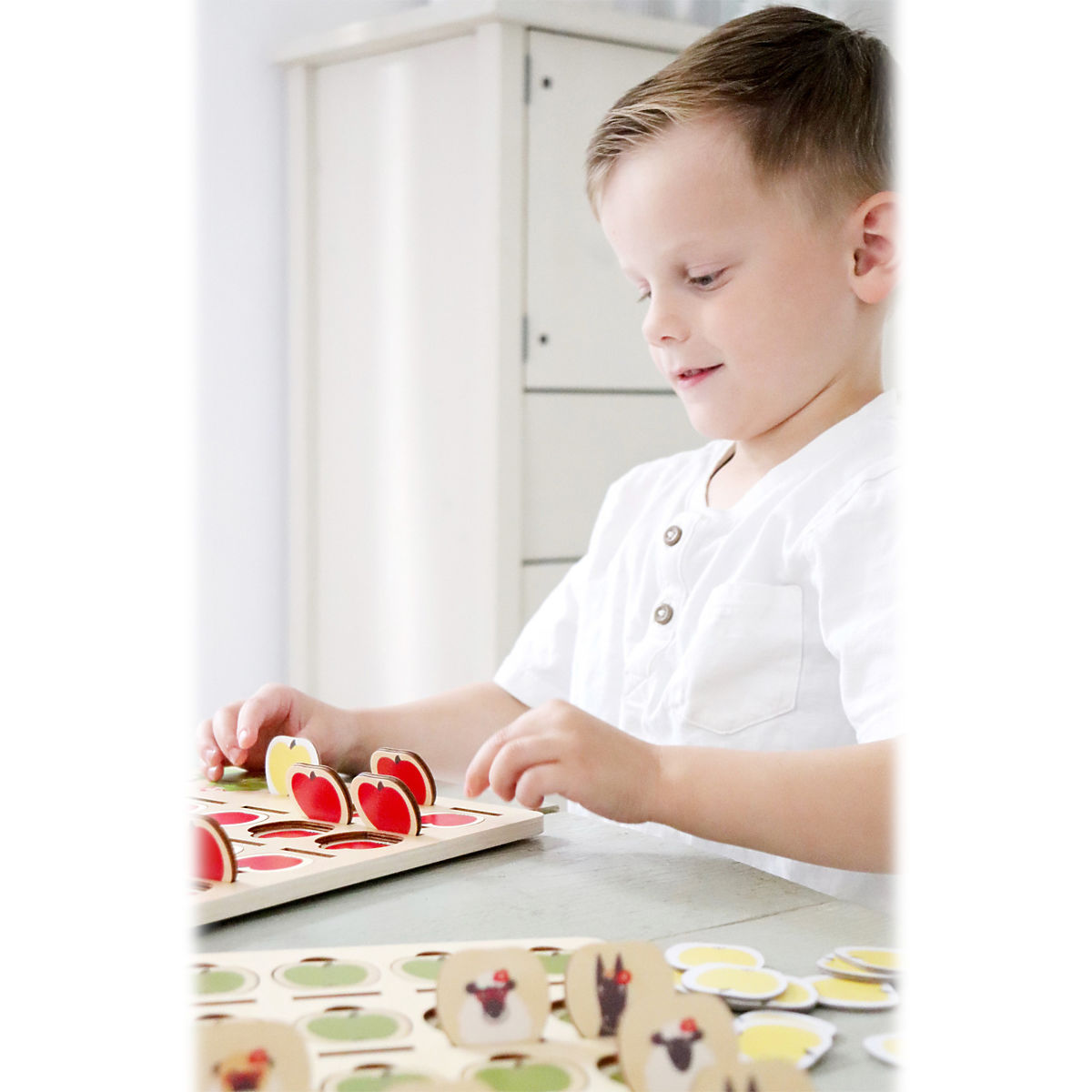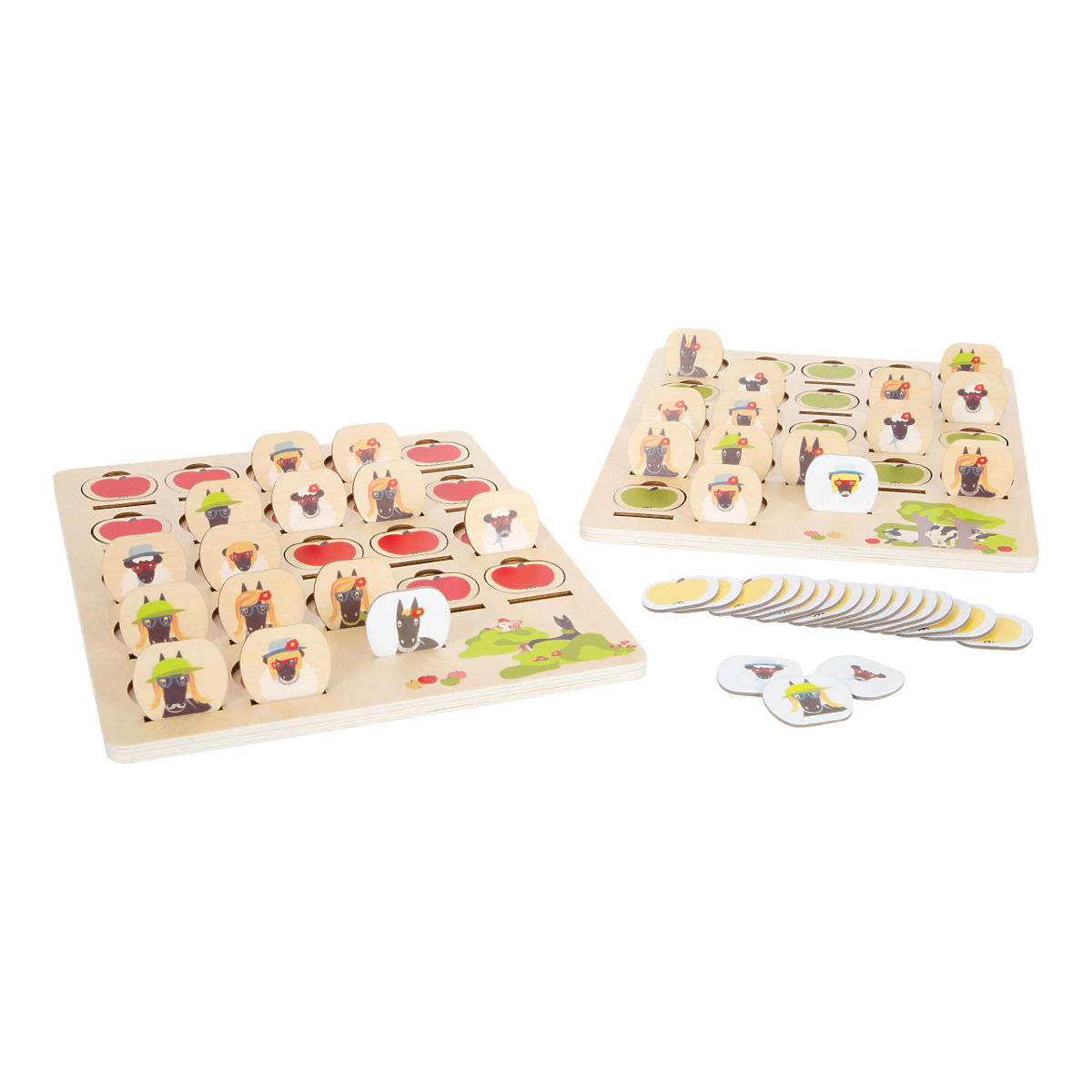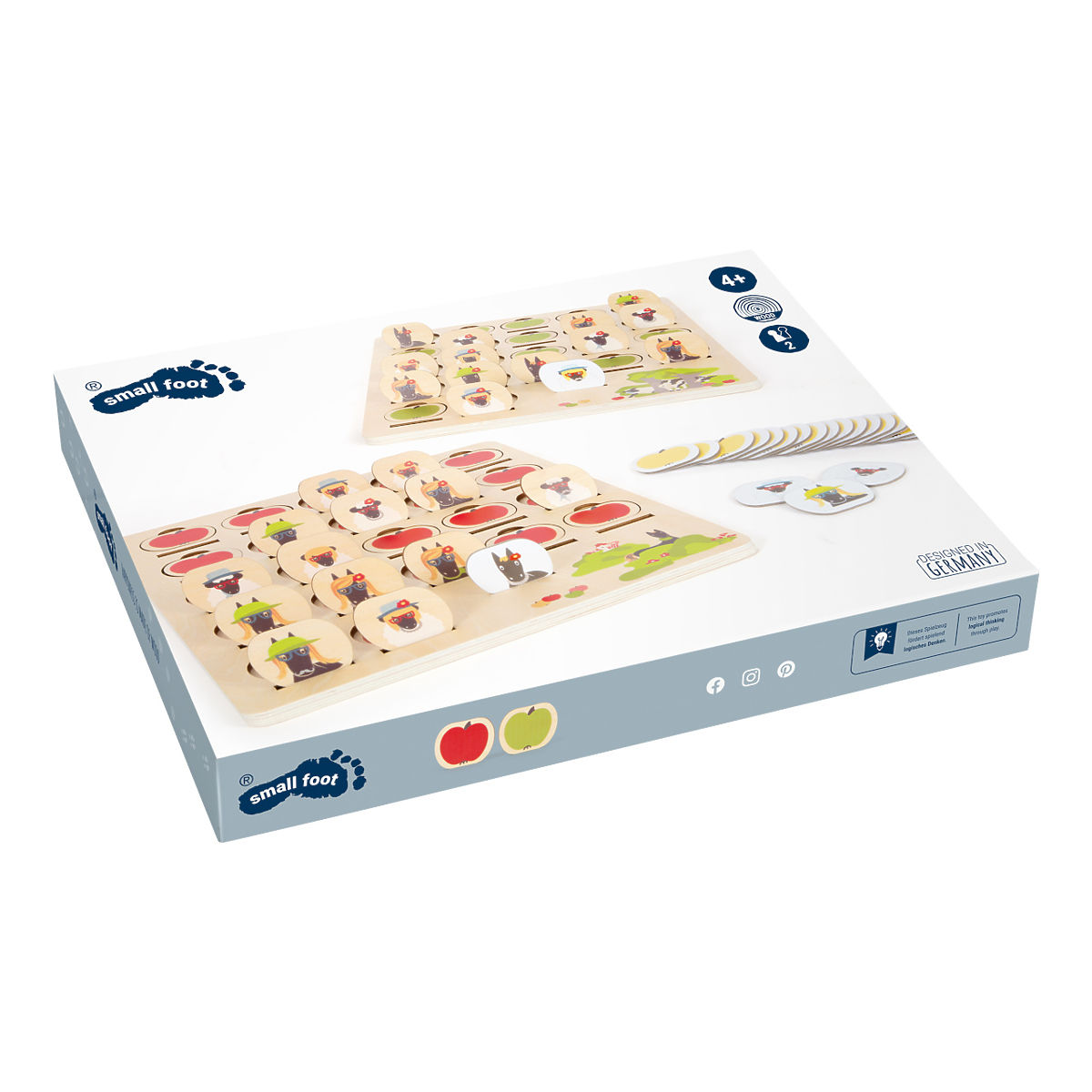 Kto ukradol jablká? S touto hrou môže hádať celá rodina, budú vám stačiť dobré pozorovacie schopnosti, aby ste čo najrýchlejšie odhalili postavičku „4 priatelia“. Klasická hra je vyrobená z robustného dreva a má dizajn vhodný pre deti. V balení nájdete 2 hracie dosky, na ktoré naskladáte ilustrované dieliky, 22 kartónových kartičiek s obrázkami postavičiek. 2 v 1, možno hrať aj ako pexeso. Uložené v kvalitnom boxe. Krava Olga a kohút Heinz sa snažia zistiť, kto ukradol jablká z lúky, podozriví sa ale ukryli veľmi dobre! Hra je vhodná na úvod do sveta podobností a rozdielov. Spoločenská hra má veľmi jednoduché pravidlá a je vhodná pre ľudí všetkých vekových kategórií. Pomáha s rozvojom kombinačných schopností a trénuje sústredenosť. Hlavné vlastnosti: populárna hra s jednoduchými pravidlami z robustného dreva dve hracie dosky, 22 kartónových kartičiek 2 v 1, možno tiež použiť ako pexeso kvalitný úložný box podporuje rozvoj kombinačných schopností a trénuje sústredenosť kompatibilná s ostatnými hrami „4 priatelia“
