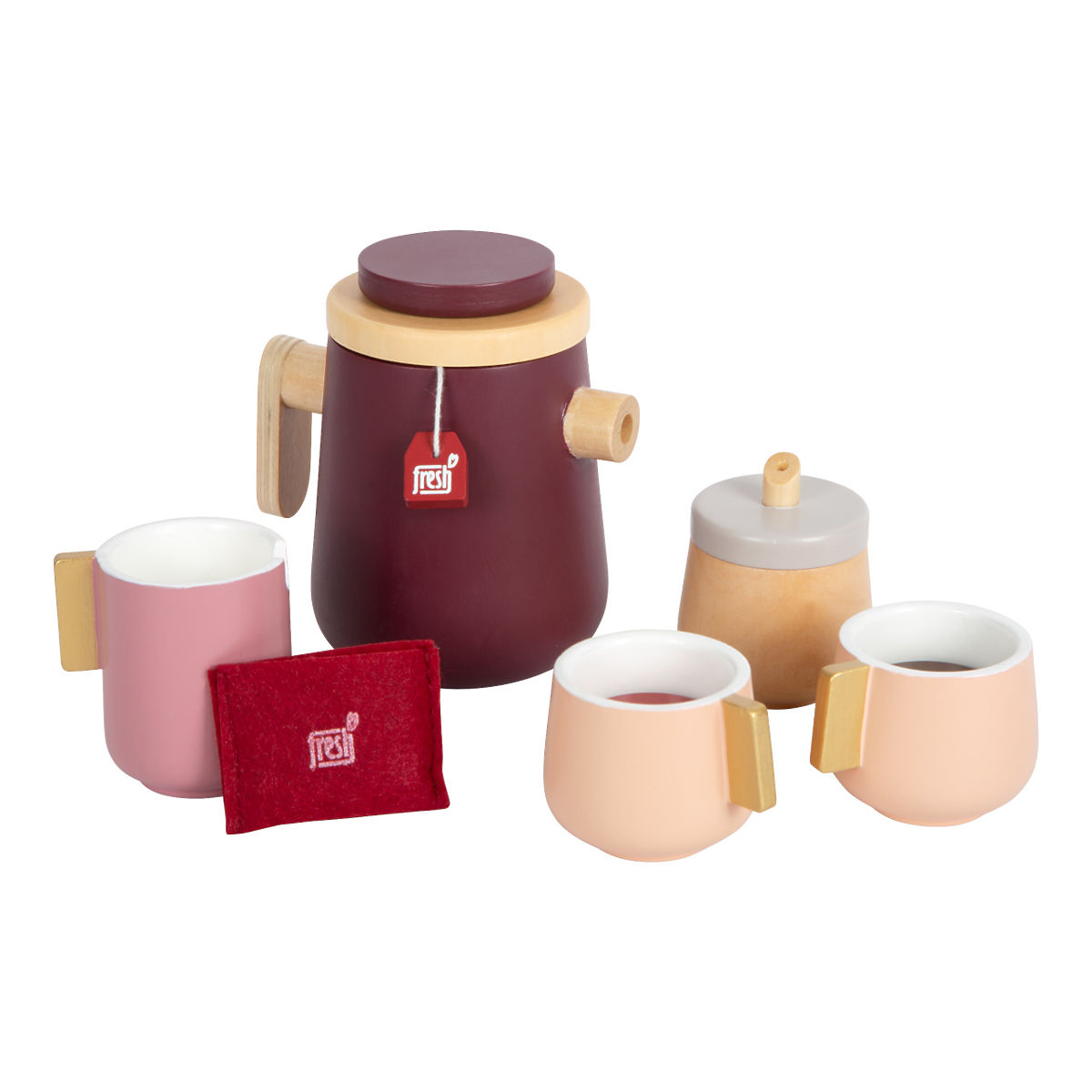 Škandinávsky dizajn v kuchynke vašich detí. V modernej sade na čaj alebo kávu pre dve osoby nájdete šálky, tanieriky, lyžičky, cukorničku, mliečničku, džbán, množstvo jedla (nie je skutočné), ako šľahačku, čajový sáčok a muffiny. Integrovaný magnet pomôže pri predstavivej hre, sladkosti sa zmestia na dezertný tanier. Robustné doplnky detskej kuchynky majú jednoduché tvary, zaoblené hrany a moderné farby, ako dymovo modrá, sýto červená a čučoriedková. Ušká šálok a mliečničky sú zlaté. Hračka má veľa viditeľného dreva, čučoriedky a šľahačka na muffinoch držia pomocou magnetov, môžete ich tiež primiešať do nápojov. Viečko na mliečničku a cukorničku je odnímateľné. Kompatibilné s ostatnými produktmi z rady „Tasty“. Hlavné vlastnosti: čajová a kávová sada nielen do detských kuchyniekvyrobené z robustného drevav balení šálky, tanieriky, lyžičky, cukornička, mliečnička, džbán, občerstvenie, dezertný tanierjednoduché tvary, zaoblené hrany, moderné farby, zlaté detaily a veľa viditeľného drevašľahačka a čučoriedky držia pomocou magnetukompatibilné s ďalšími produktmi z rady „Tasty“trénuje sociálne zručnosti