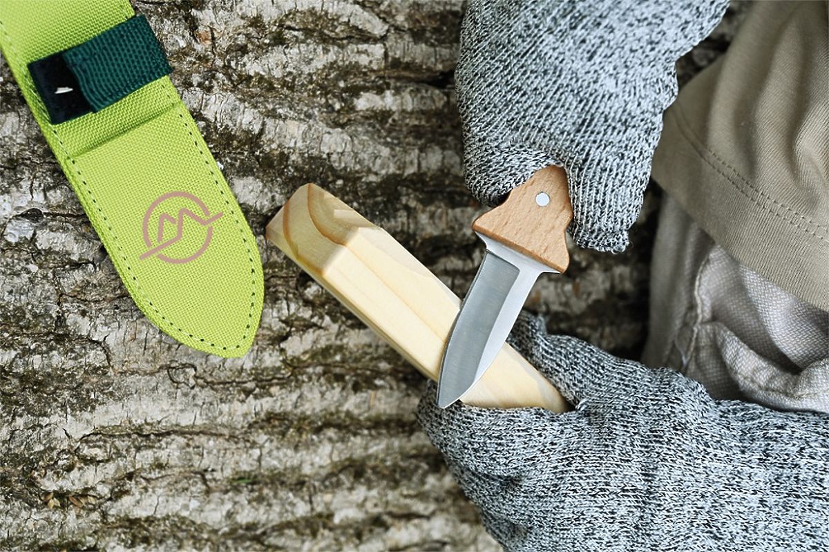 Outdoorový detský nôž s bezpečnou čepelou a rukavicami na vyrezávanie. .. viac