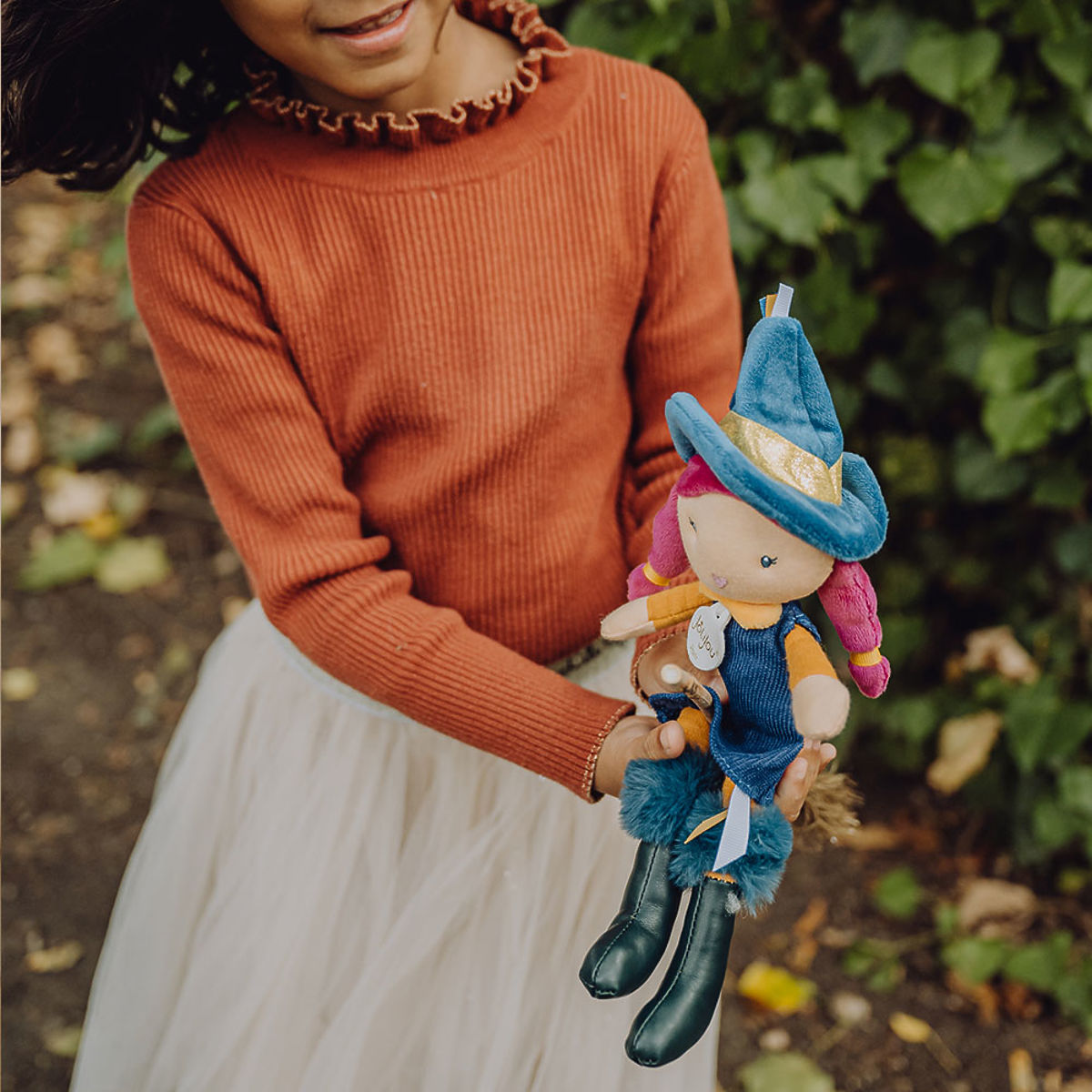 Cena je uvedená za 1 ks. Pim, Pam, Poum - to sú 3 bábiky čarodejnice, ktoré sú pripravené na hranie s deťmi. Každá čarodejnica má svoj štýl. Čižmy, špicaté klobúky so strapcami a vzorované šaty. Pri objednávaní môžete v poznámke objednávky požiadať o konkrétny motív, ak je na sklade, radi vám vyhovieme. V opačnom prípade zasielame náhodne. Údržba: Perte v kúpeli na 30°. Odporúčanie: Prirodzené alebo nízkoteplotné sušenie. Hračka spĺňa európske bezpečnostné CE normy. Hlavné vlastnosti: vhodné od narodenia bavlnená tvár, vyšívané oči a ústa v tvare srdca čarodejnica s doplnkami podporuje tvorivosť a predstavivosť