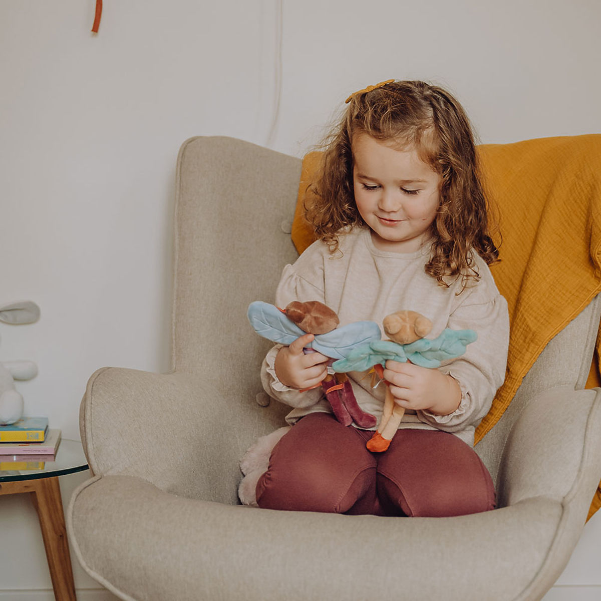 Predstavujeme vám bábiku Taru v kostýme motýlej víly. Fialové šaty, modré krídla a fialové vysoké topánky sú na bábike veľmi slušivé. S touto peknou bábikou môžu deti podporiť svoju fantáziu a preniesť sa tak do sladkých a kreatívnych príbehov lesných víl. Bábika je dodávaná v darčekovej krabičke. Údržba: Perte v kúpeli na 30°. Odporúčanie: Prirodzené alebo nízkoteplotné sušenie. Hračka spĺňa európske bezpečnostné CE normy. Hlavné vlastnosti: vhodné od narodenia, bavlnená tvár, vyšívané oči aj ústa, bábika s doplnkami, darčeková krabička s lesnou tematikou