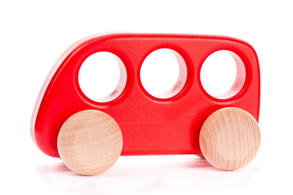 Drevený mikrobus s tromi okienkami, ktoré slúžia aj ako úchyt pre malú ruku. Tvar, zakrivenie a správne zvolené veľkosti otvorov umožňujú dieťaťu objavovať úchop prstov a rozpoznávať tvary. Každý pohyb hračky ako je tlačenie, váľanie, jazda po krivkách nábytku alebo kreslenie čiar vo vzduchu tak zároveň pomáha dieťaťu objavovať priestor a dynamiku ukrytú v tele. Hra s týmto autobusom teda rozvíja hrubú motoriku. Odporúčame povrch hračky čistiť iba vlhkou handričkou. Nevystavujte, prosím, túto hračku vysokým teplotám alebo vysokej vlhkosti, drevo sa za týchto podmienok môže ohýbať a deformovať. Spĺňa všetky európske bezpečnostné normy. Hlavné vlastnosti: vyrobené z prírodných zdrojov ľahko recyklovateľné dizajn Wojciech Bajor vhodné pre úchop do malej rúčky rozvíja hrubú motoriku
