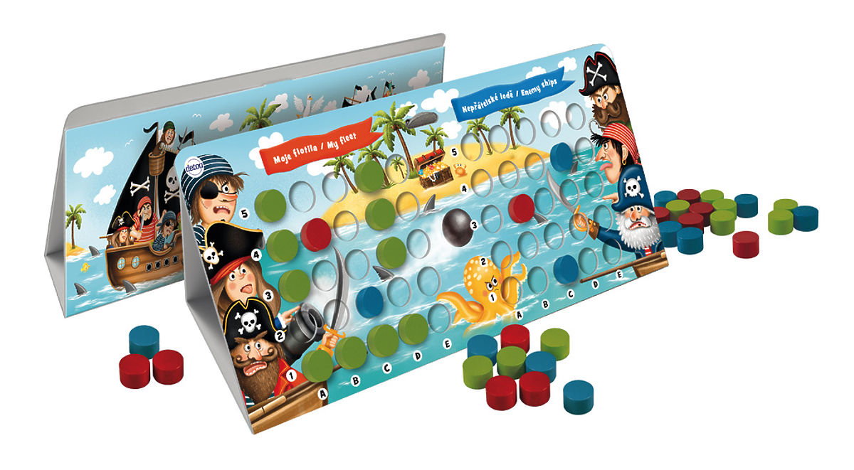 Originálna rodinná hra pre deti aj dospelých. Táto námorná bitka je epickou strategickou hrou pre dvoch až 6 hráčov, ktorá prináša dobrodružstvo a taktiku na váš stôl. V tejto pirátskej námornej bitke je vašou úlohou zničiť nepriateľskú flotilu skôr, než sú všetky vaše lode potopené. V úlohe kapitána musíte pripraviť svoju bojovú stratégiu a doviesť svojich námorníkov k víťazstvu! Nasadte flotilu, naplánujte svoj útok a bitka môže začať. Táto hra je nielen vizuálne pútavá, ale tiež ponúka skvelý herný zážitok. Výrobok spĺňa požiadavky EÚ na bezpečnosť hračiek a je vhodný pre deti od 5 rokov. Hra obsahuje: kartónový herný plán 2 ks, celkom 144 dielov. Hlavné vlastnosti: počet hráčov: 2 - 6, doba jednej hry: 20 - 40 minút, výrobok spĺňa požiadavky EÚ na bezpečnosť hračiek, vhodný pre deti od 5 rokov.