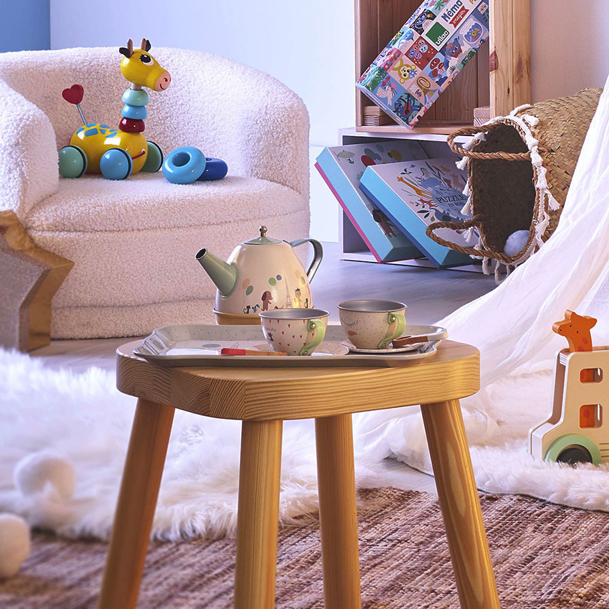 Pomocou čarovného čajového servisu si deti rozvíjajú fantáziu, učia sa pravidlám servisu a spoločenskému správaniu. Kanvička je vybavená naťahovacím hracím strojčekom, ktorý pri jej naklonení spustí jemnú narodeninovú melódiu „Veľa šťastia, zdravia“. 14-dielnu súpravu ilustrovala Sarah Betz jemnými farbami evokujúcimi mesto Paríž. Je vyrobená z ľahkého a veľmi odolného kovu. Skvelý spôsob, ako podporiť kreatívne a nápadité hranie. Vďaka praktickému kufríku je tiež skvelým spoločníkom na cesty. Táto hračka nevyžaduje batérie, hudbu hrá mechanická hracia skrinka, ktorá sa navíja pomocou kľúča pripevneného pod kanvičkou. Hlavné vlastnosti: tácka, kanvička a 4 šálky s podšálkami, prehráva melódiu „Veľa šťastia, zdravia“, praktický kufrík pre ľahké prenášanie, odolné, ľahké kovové prevedenie, dizajn Sarah Betz