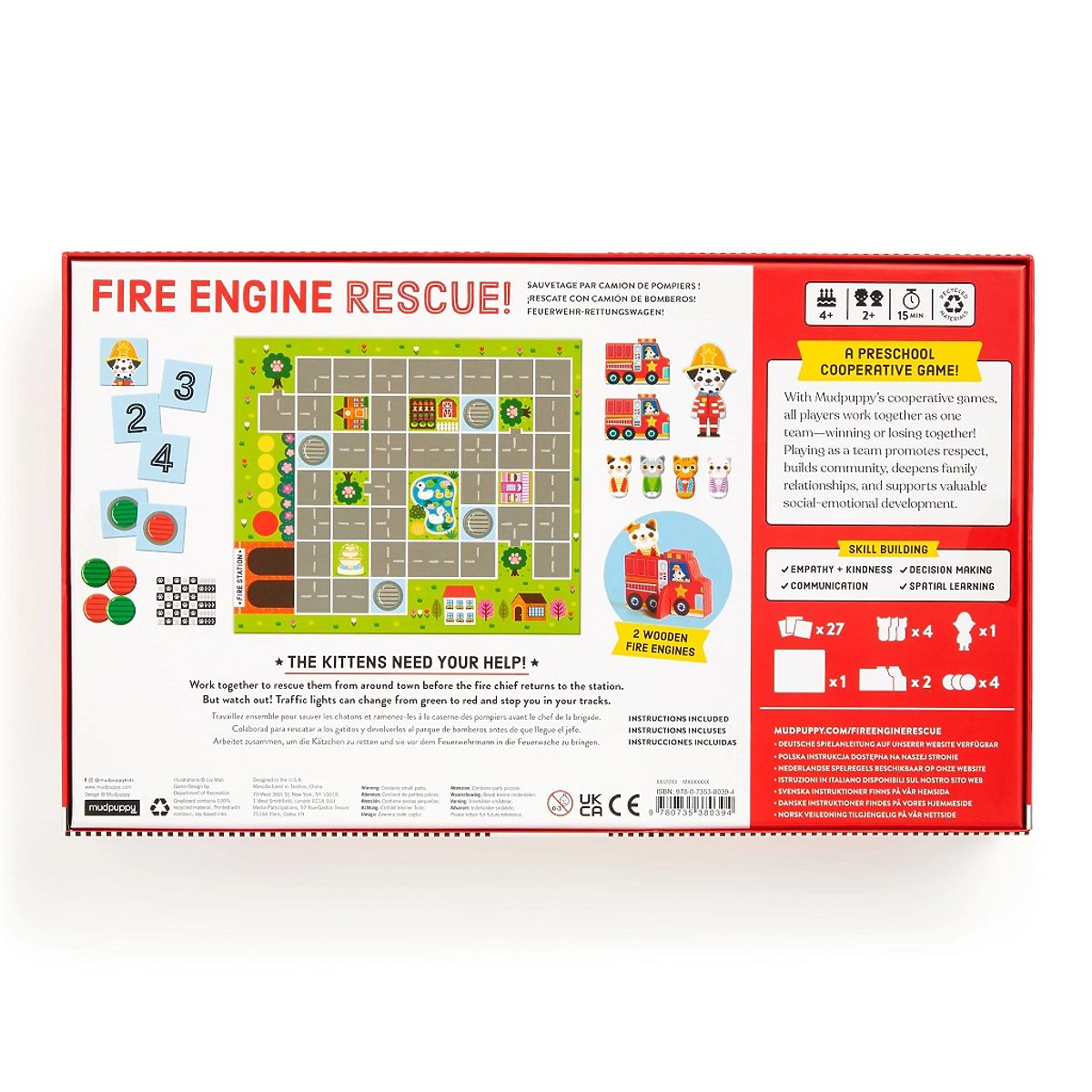 Predstavujeme Vám spoločenskú stolovú hru, pri ktorej sa prenesiete na záchrannú akciu hasičov. Malé mačiatka uviazli na stromoch a potrebujú pomoc všetkých hráčov. Všetci spolupracujú na ich záchrane, než sa veliteľ hasičov vráti na stanicu. Ale pozor, semafory na hernom pláne sa môžu zmeniť zo zelenej na červenú a zastaviť Vás. Hra obsahuje hernú dosku, 27 kariet, 4 žetóny semaforu, 4 žetóny mačiatok, 2 drevené hasičské striekačky a 1 stojaceho veliteľa hasičov. Drevené hasičské vozidlá majú otvory, do ktorých sa mačiatka zasúvajú, keď sa vracajú na stanicu. Táto hra je ideálna pre rodinnú zábavu. Deti sa pri hre naučia spolupracovať v tíme. Hlavné vlastnosti: vhodné od 4 rokov, rozvíja koncentráciu a predstavivosť, hra pre celú rodinu, tlačené netoxickými farbami na báze sóje, vyrobené s použitím recyklovaných a udržateľne získaných materiálov