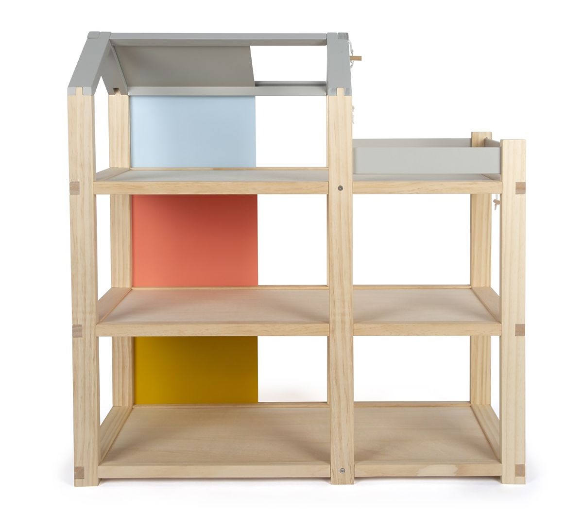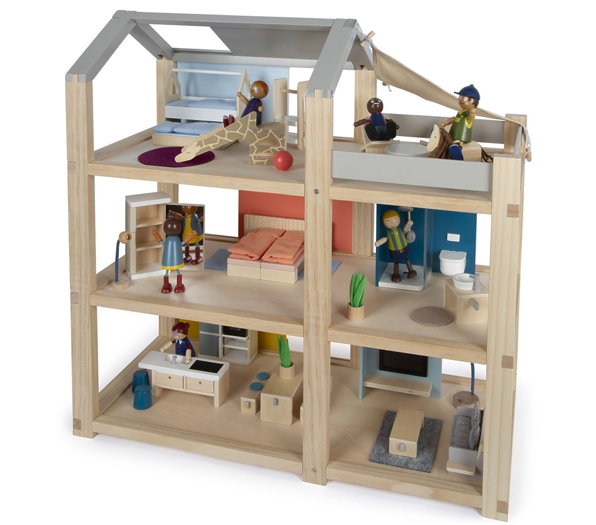 Tento veľký drevený domček pre bábiky v škandinávskom štýle s tromi podlažiami a priestrannou strešnou terasou sa stane nielen zábavnou a kreatívnou hračkou, .. viac