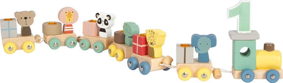 Vykúzlite malým deťom úsmev na tvári týmto narodeninovým vláčikom, ktorého pasažieri sú zvieratká z džungle. S láskou navrhnuté zvieratká prinášajú narodeninové sviečky na svojich vagónoch. Deti si môžu ľubovoľne umiestňovať 6 zvieratiek na 6 vagónov. Do lokomotívy deti môžu vkladať číslice od 1 po 9. Vagóny je možné ľahko spojiť alebo odpojiť pomocou malých háčikov a očiek. Navyše sa so zvieratkami dajú vymýšľať ďalšie hry, keď vystúpia z vlaku. Alebo si môžu deti hrať len tak a vymýšľať svoje vlastné príbehy. Hračka je ideálna pre deti od 24 mesiacov. Vďaka vysokému množstvu prírodného dreva v kombinácii s modernými farbami je tento narodeninový vlak skutočným lákadlom a príjemnou dekoráciou na každom narodeninovom stole. Balenie obsahuje: 6 zvieratiek, 6 vagónikov, lokomotíva s číslami od 1 do 9 Hlavné vlastnosti: roztomilá narodeninová dekorácia podporuje predstavivosť